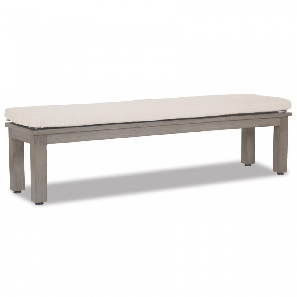 Ezra Modern Taupe Grey Aluminum Beige Cushion Outdoor Bench