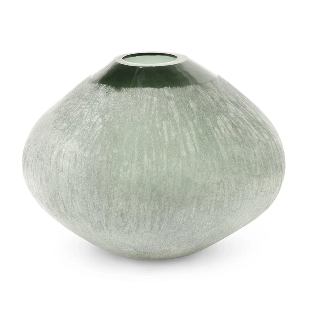Palecek Mykonos Coastal Beach Green Etched Glass Vase - Medium