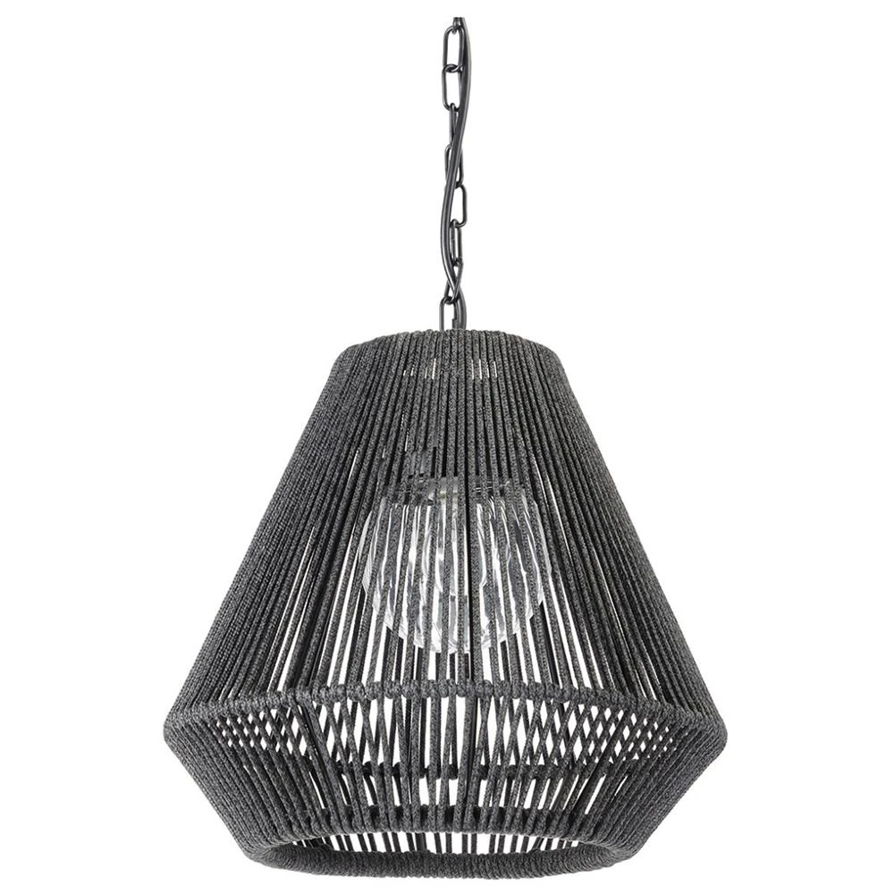 Palecek Tanner Coastal Beach Black Woven Wicker Outdoor Tapered Pendant Lantern