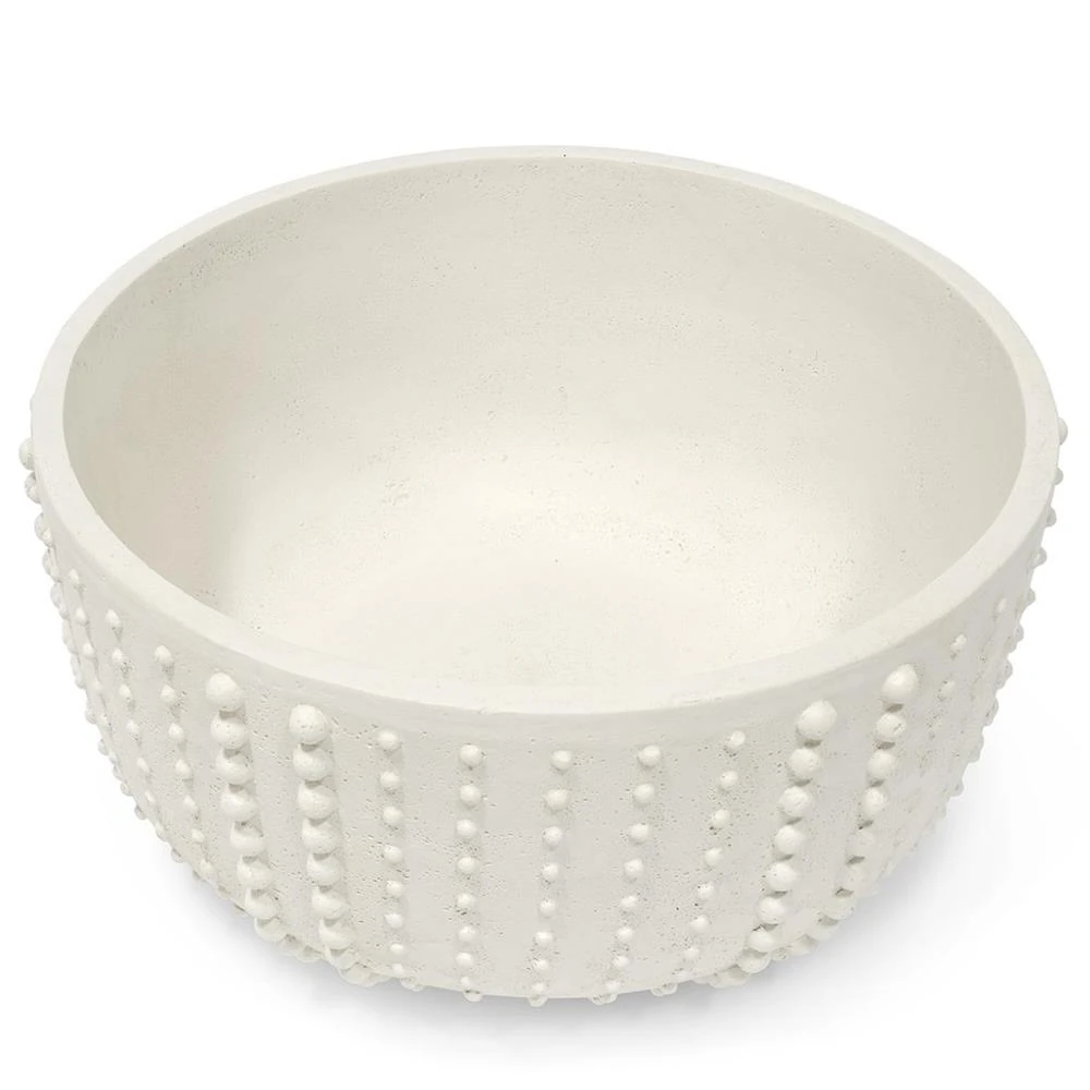 Palecek Urchin Coastal Beach White Stonecast Round Outdoor Decorative Bowl