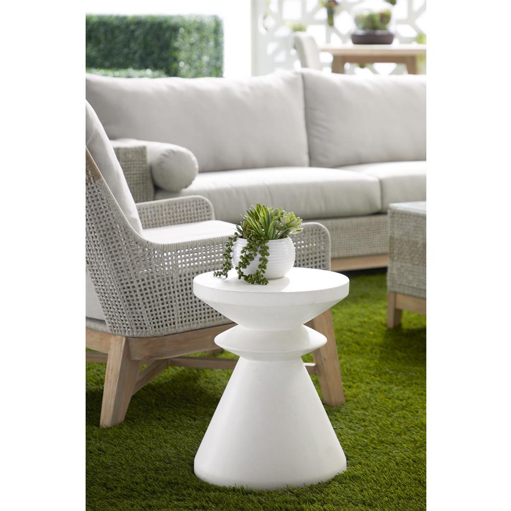 • Brandon Coastal Beach Ivory Textured Stonecast Outdoor Side End Table|Kathy Kuo Home