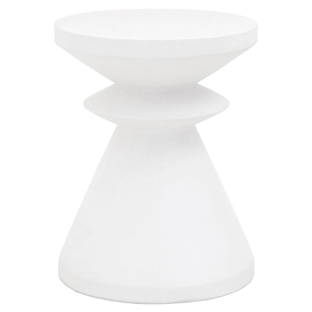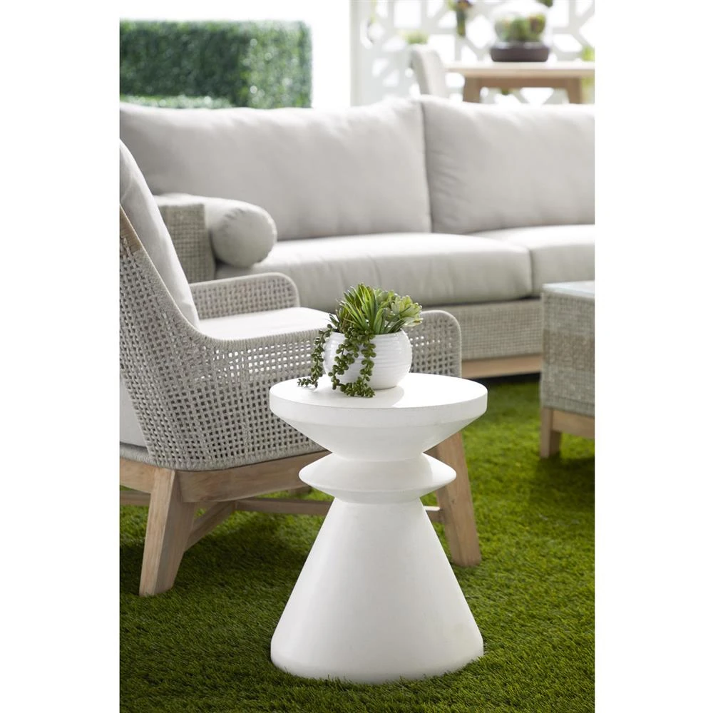 Declan Coastal Beach White Concrete Round Hourglass Outdoor Side End Table