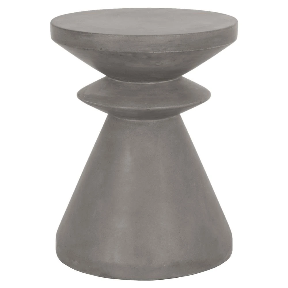 Declan Coastal Beach Grey Concrete Round Hourglass Outdoor Side End Table