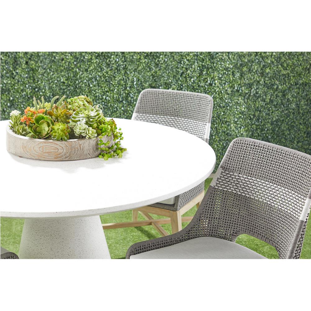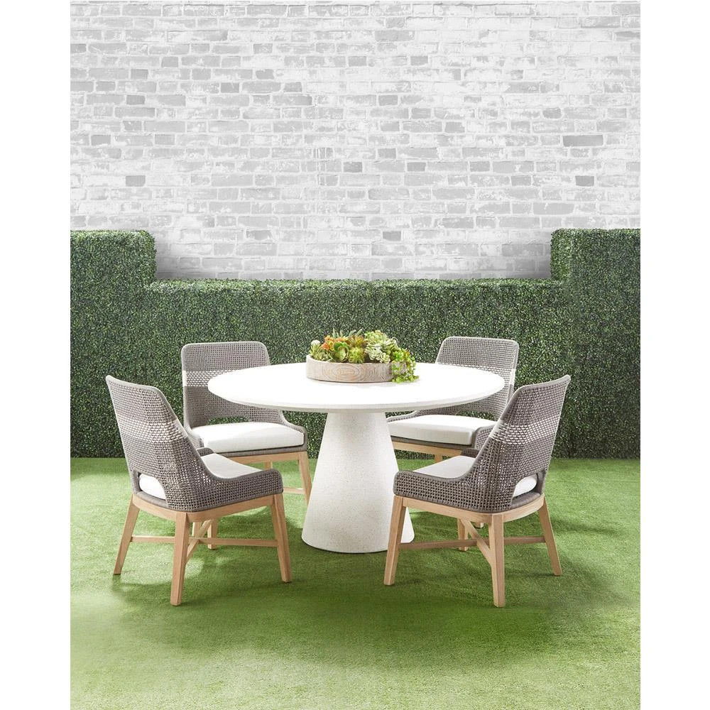 • Theodore Coastal Taupe Woven Cushion Grey Teak Outdoor Dining Chair - Set of 2|Kathy Kuo Home