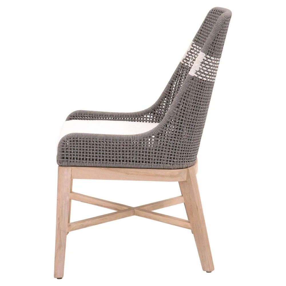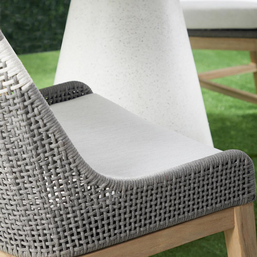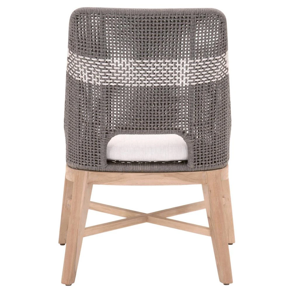 Theodore Coastal Beach Grey Woven Rope Teak Wood Outdoor Dining Chair - Set of 2