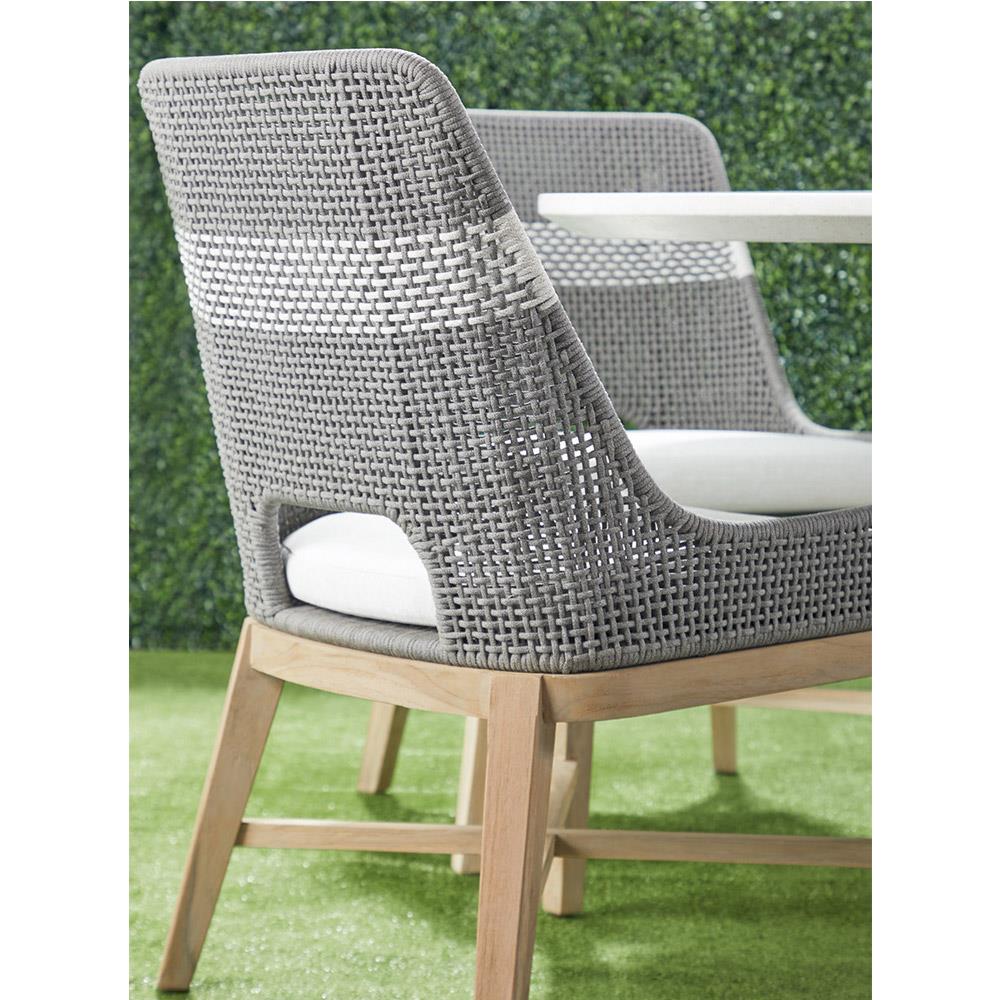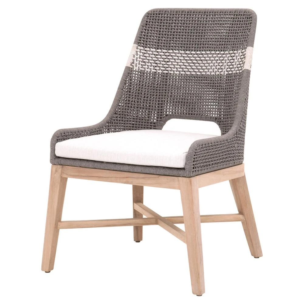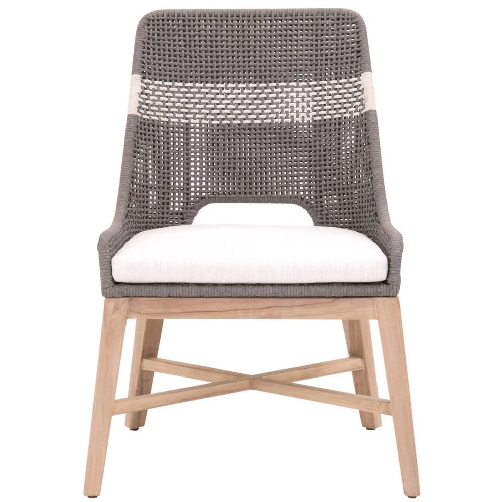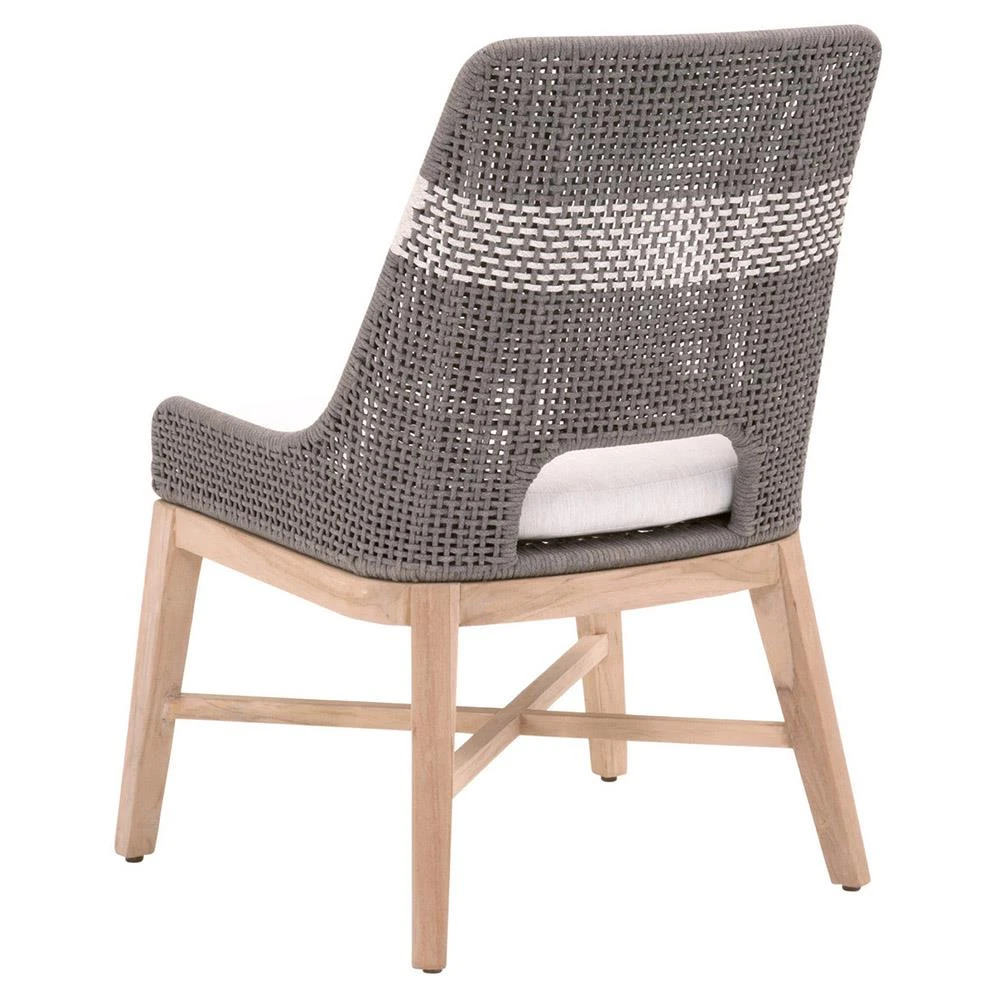 Theodore Coastal Beach Grey Woven Rope Teak Wood Outdoor Dining Chair - Set of 2