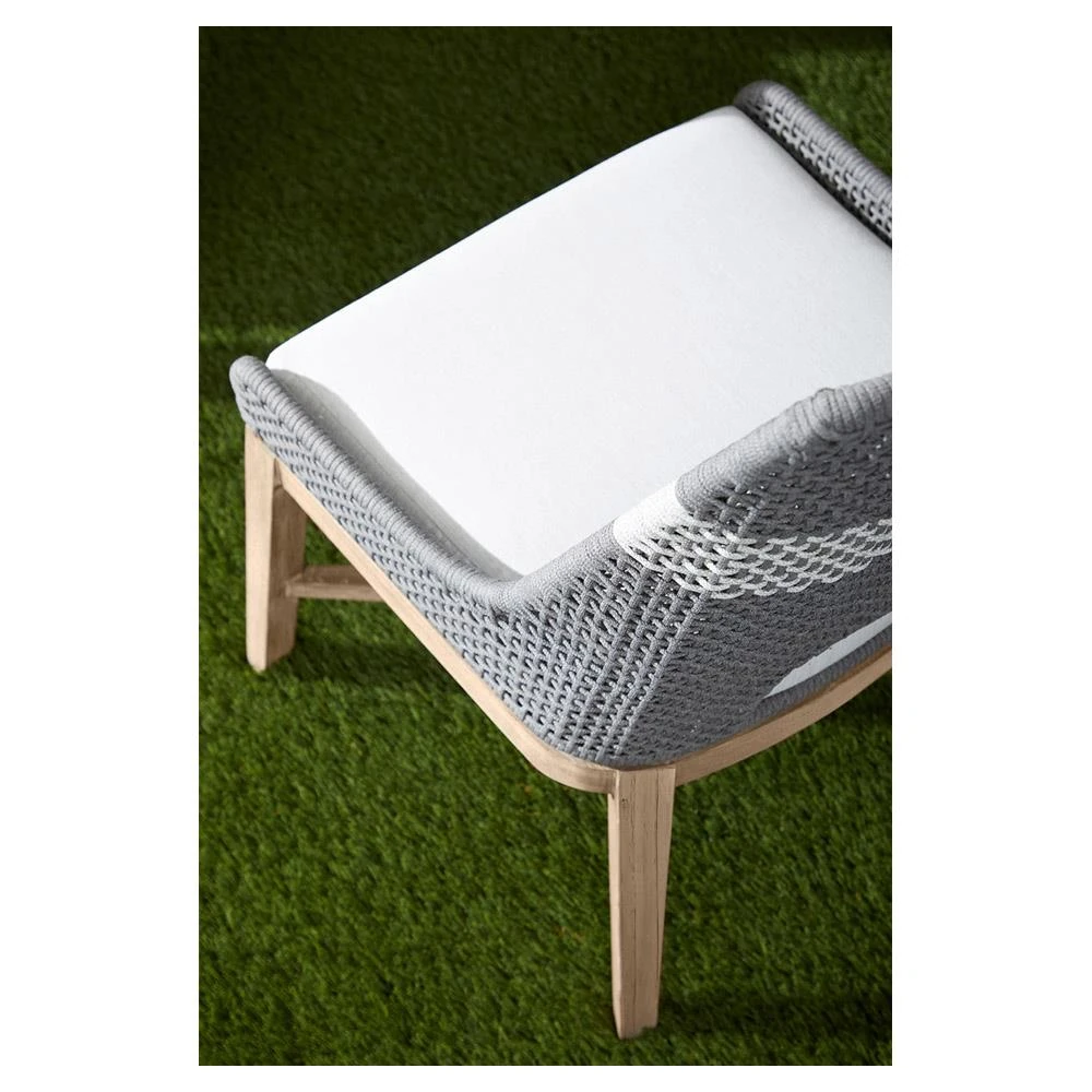 Theodore Coastal Beach Grey Upholstered Woven Rope Teak Outdoor Chaise Lounge