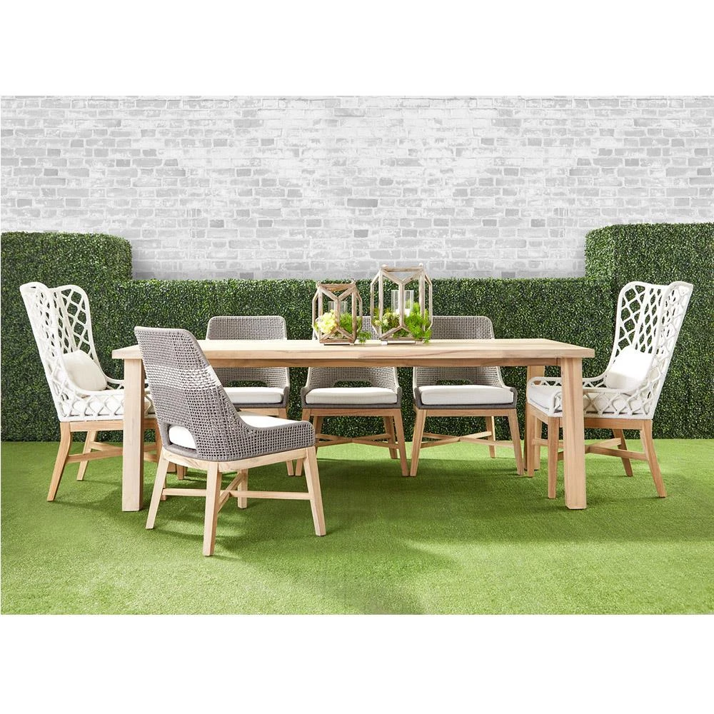 • Francine Coastal Natural Teak Green Woven Outdoor Dining Chair - Set of 2|Kathy Kuo Home