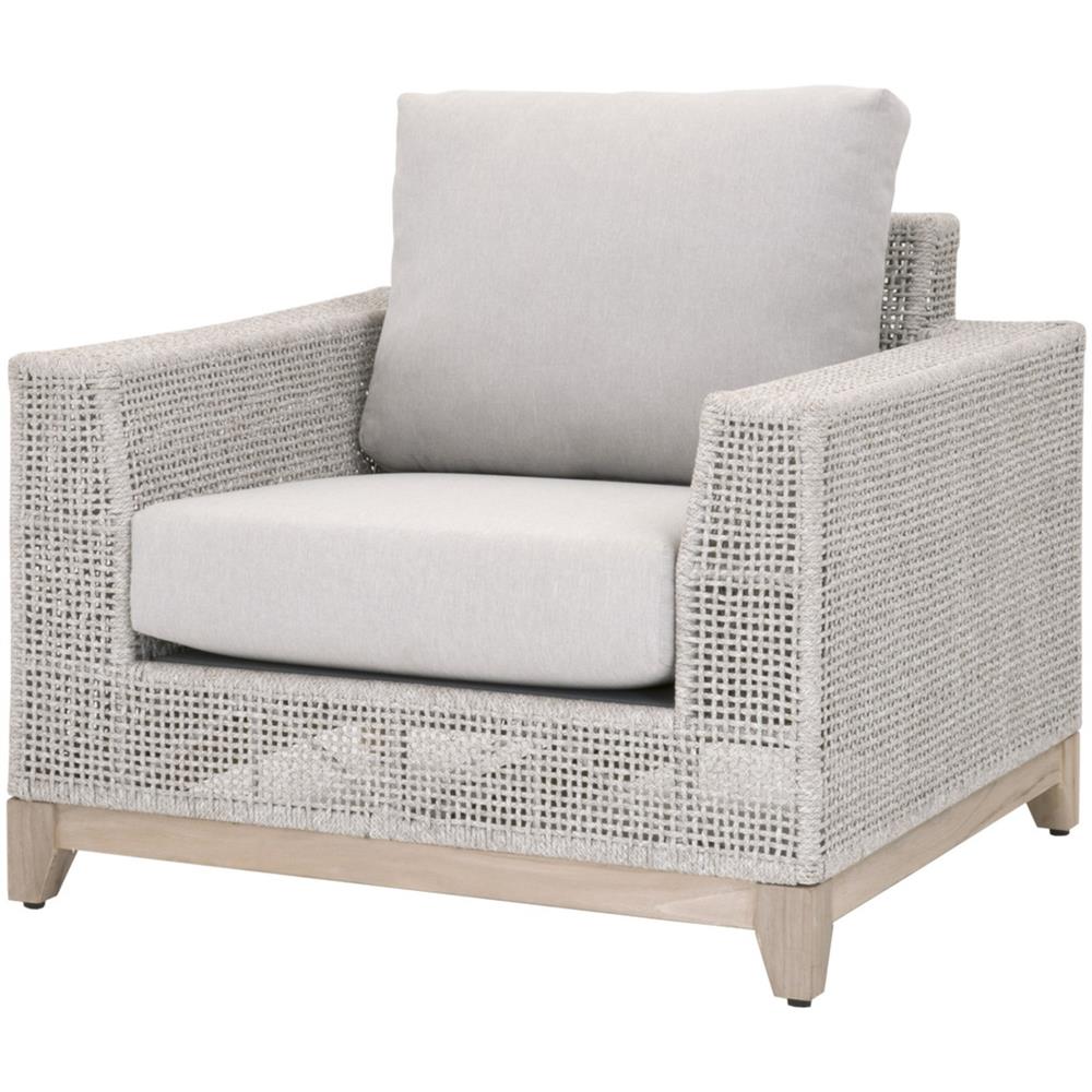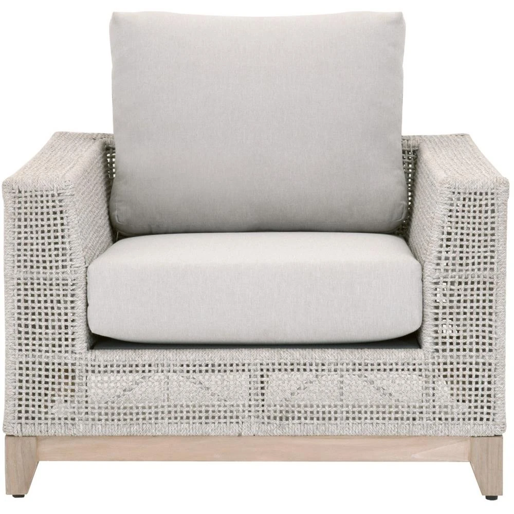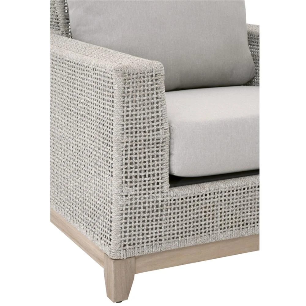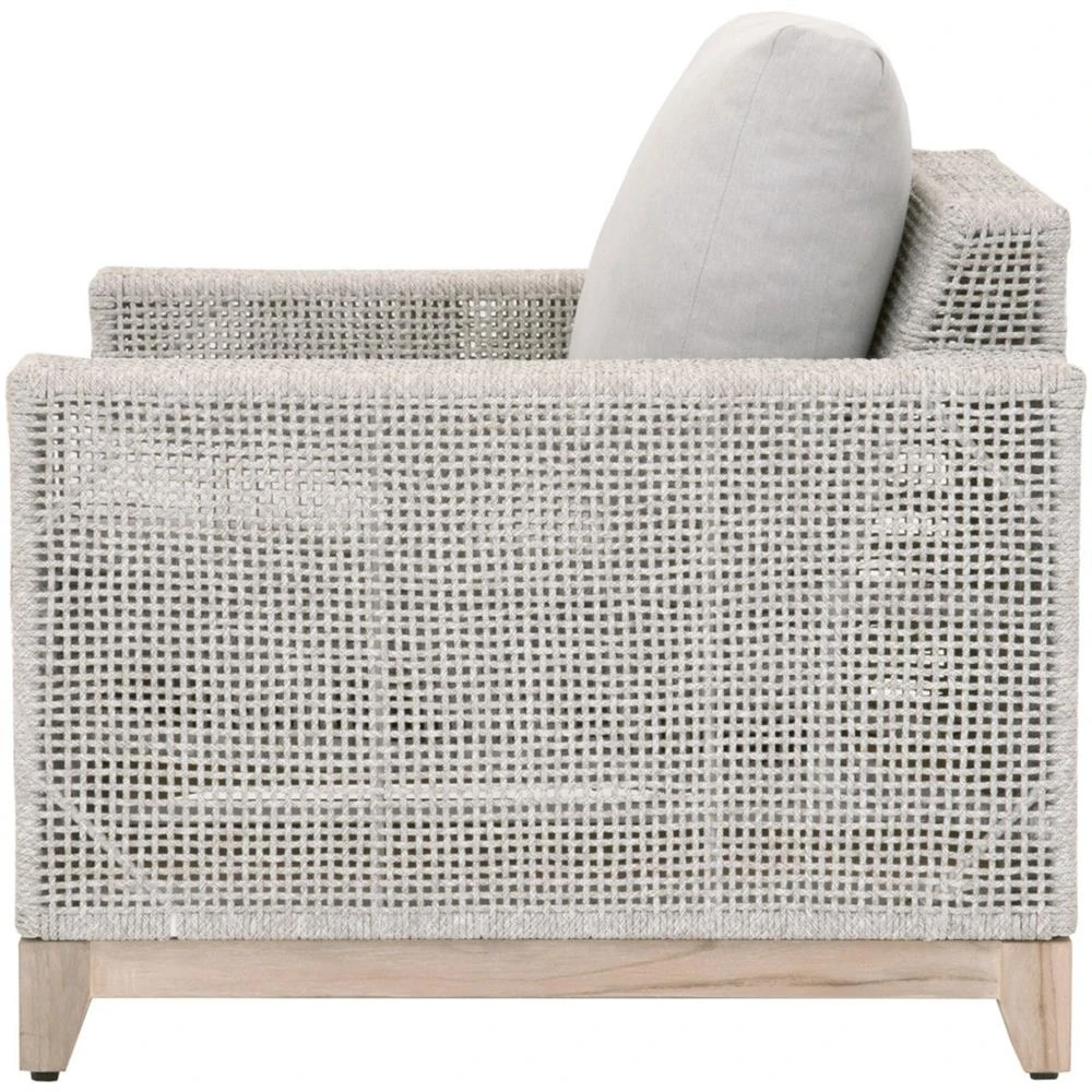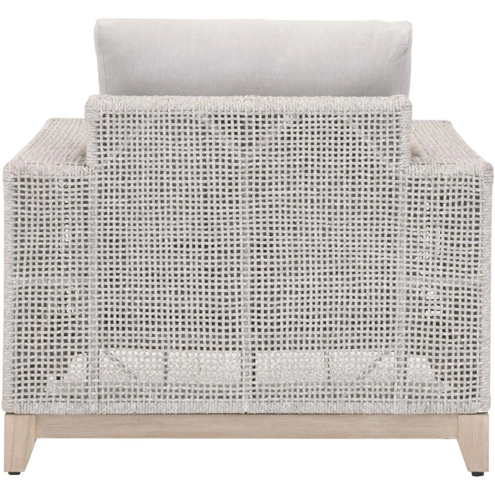 Liana Coastal Beach Grey Teak Wood Woven Rope Cushion Outdoor Lounge Chair