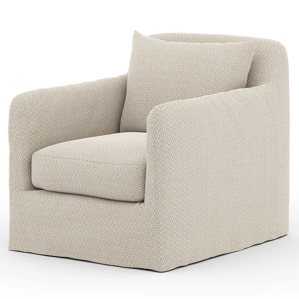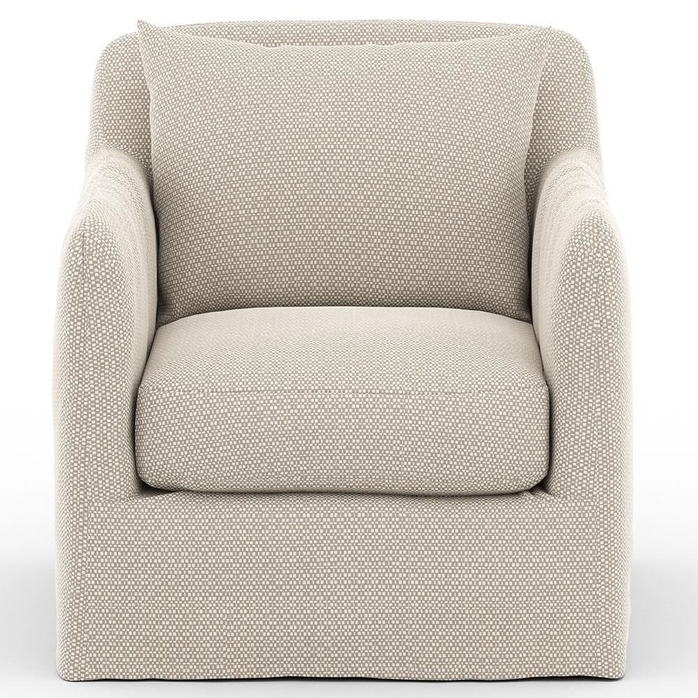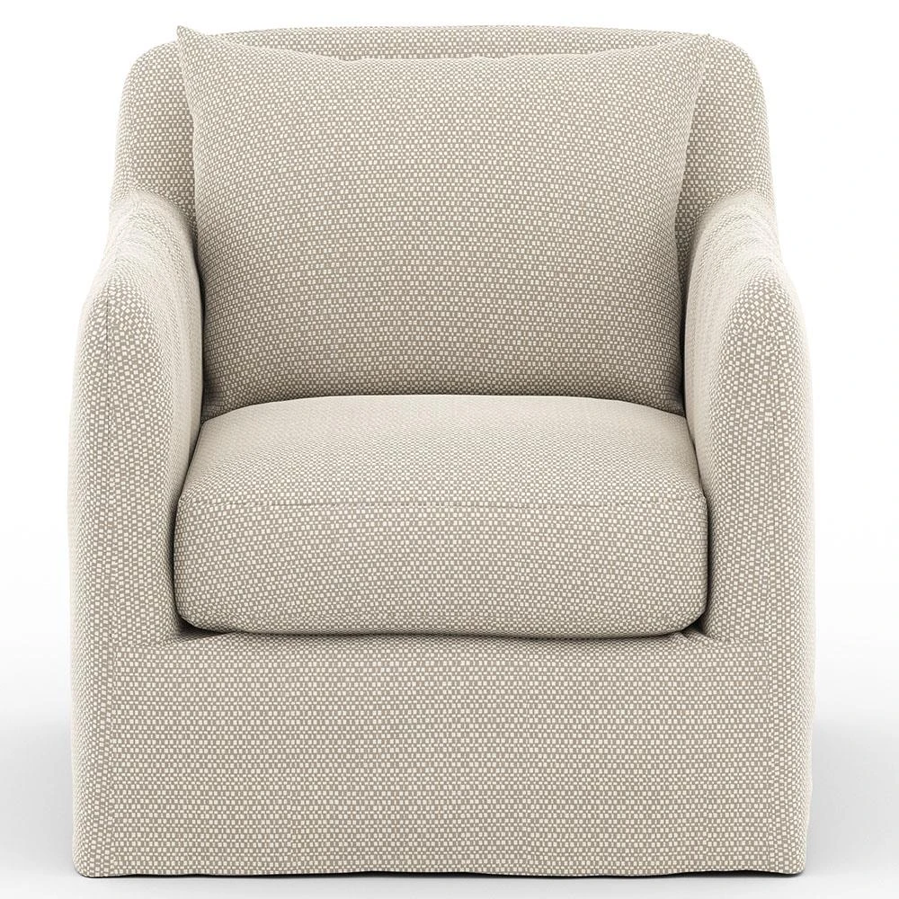 Cassandra Modern Sand Beige Cushion Slipcovered Outdoor Swivel Arm Chair
