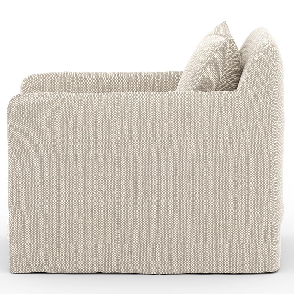 • Upholstered in faye sand performance fabric; Fabric content: 100% Olefin; Removable slipcover