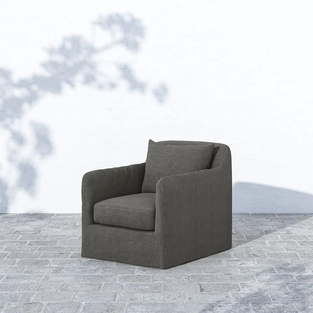 • Cassandra Modern Stone Grey Cushion Slipcovered Outdoor Swivel Arm Chair|Kathy Kuo Home