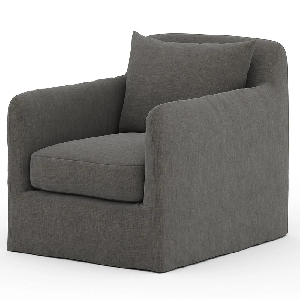 Cassandra Modern Stone Grey Cushion Slipcovered Outdoor Swivel Arm Chair