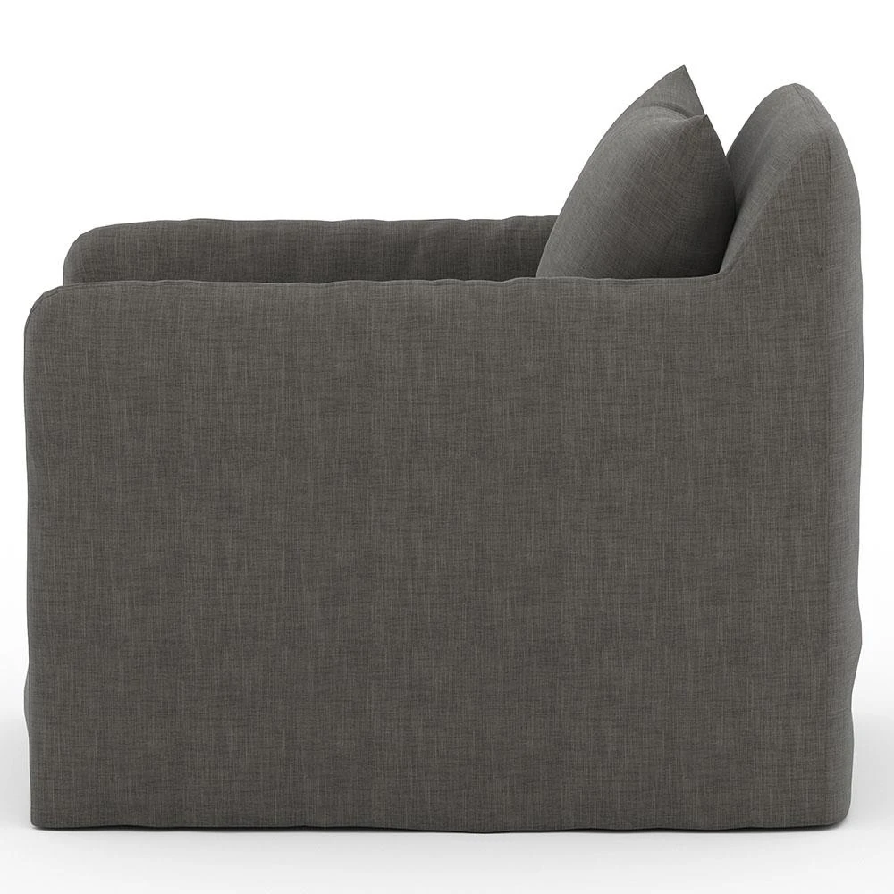 • Upholstered in charcoal performance fabric; Fabric content: 100% Olefin; Removable slipcover