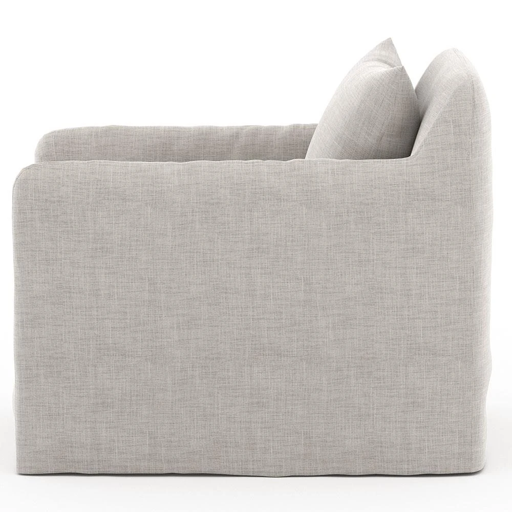 • Upholstered in stone grey performance fabric; Fabric content: 100% Olefin; Removable slipcover