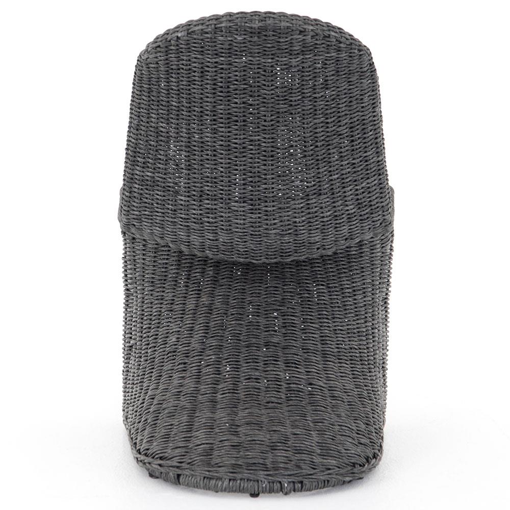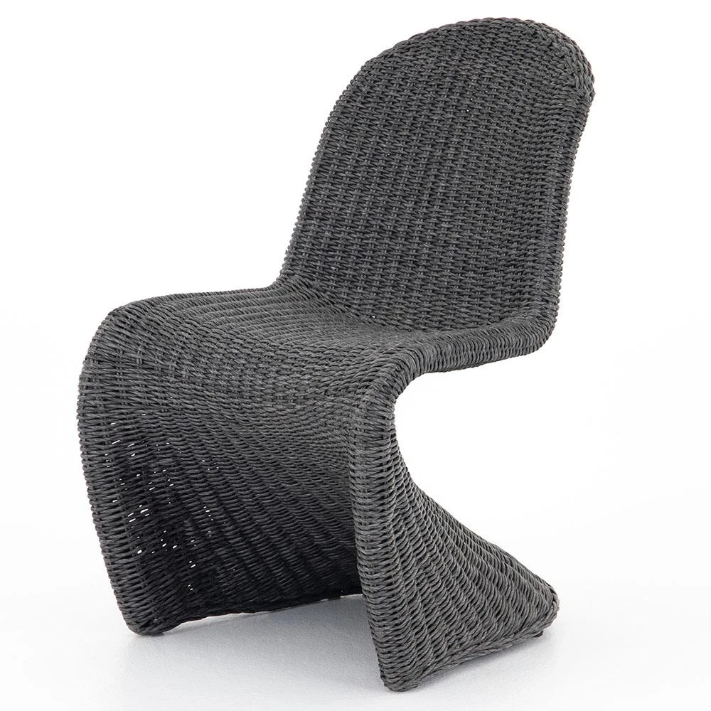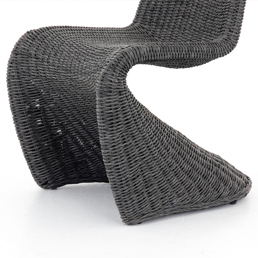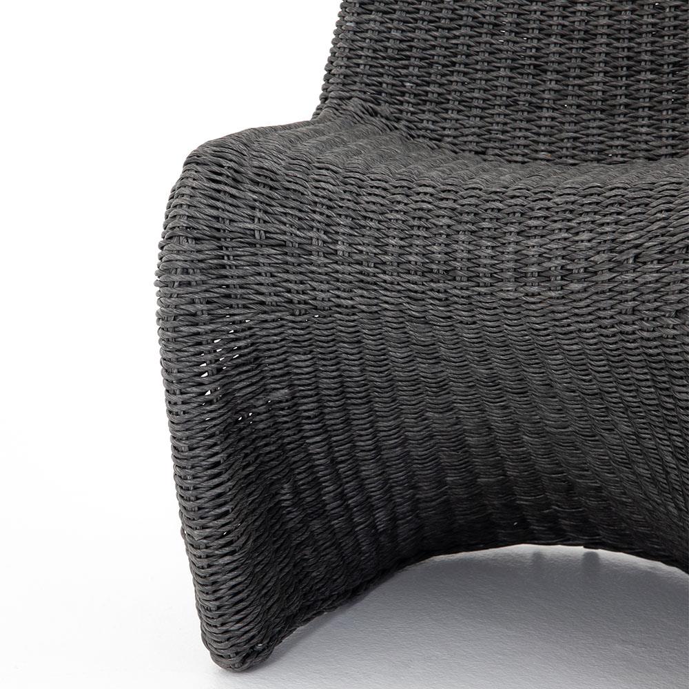 Ivanna Coastal Beach Black Woven Wicker Outdoor Dining Chair