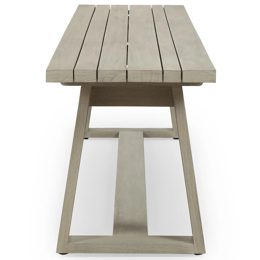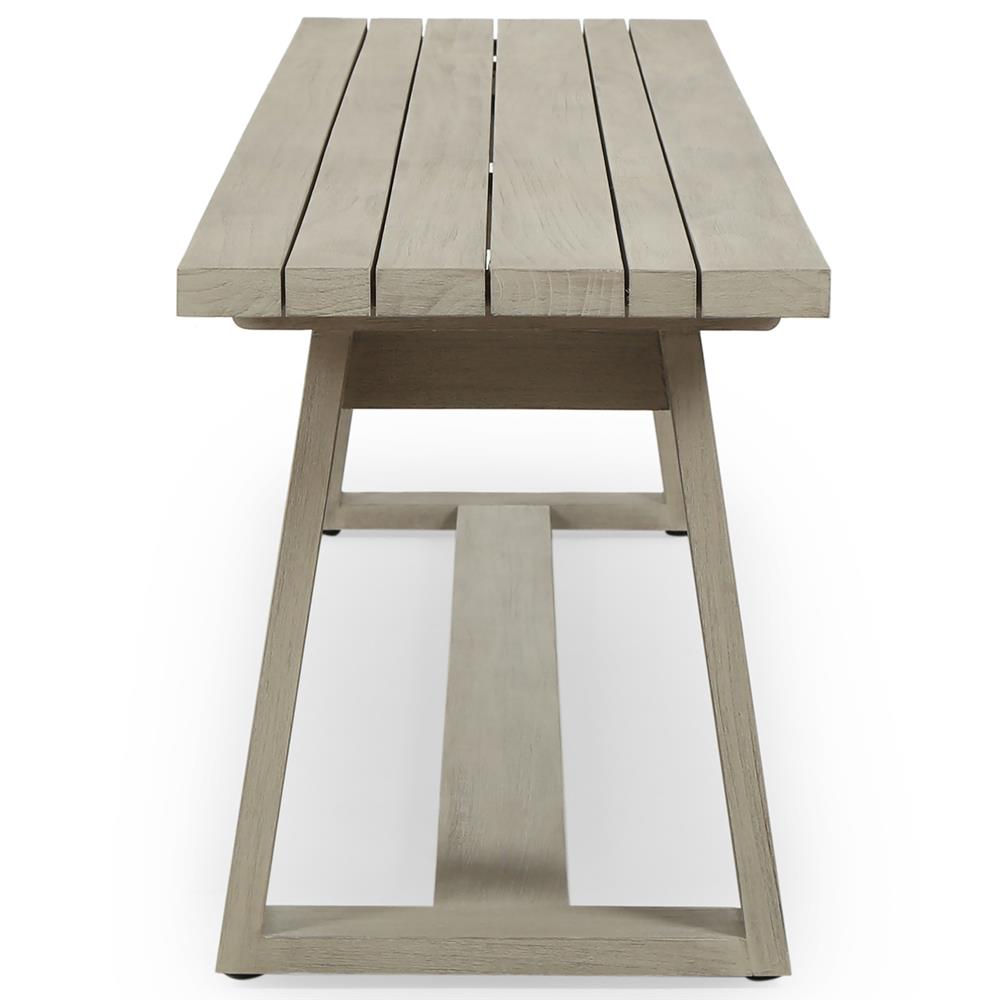 Cody Modern Classic Weathered Grey Teak Wood Outdoor Dining Bench