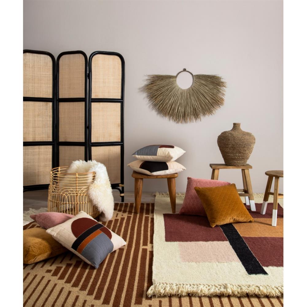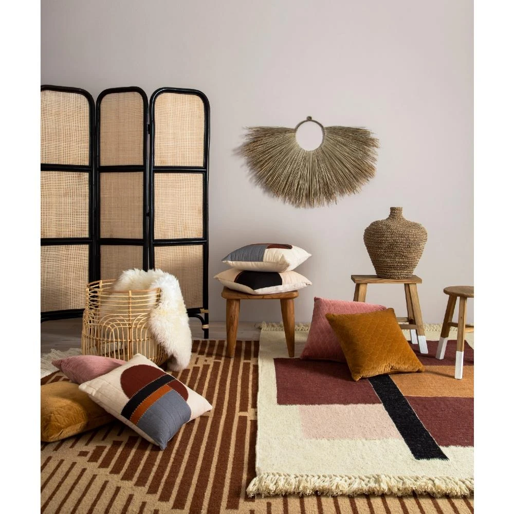 • Airah Coastal Beach Beige Rounded Woven Wicker Outdoor Ottoman|Kathy Kuo Home