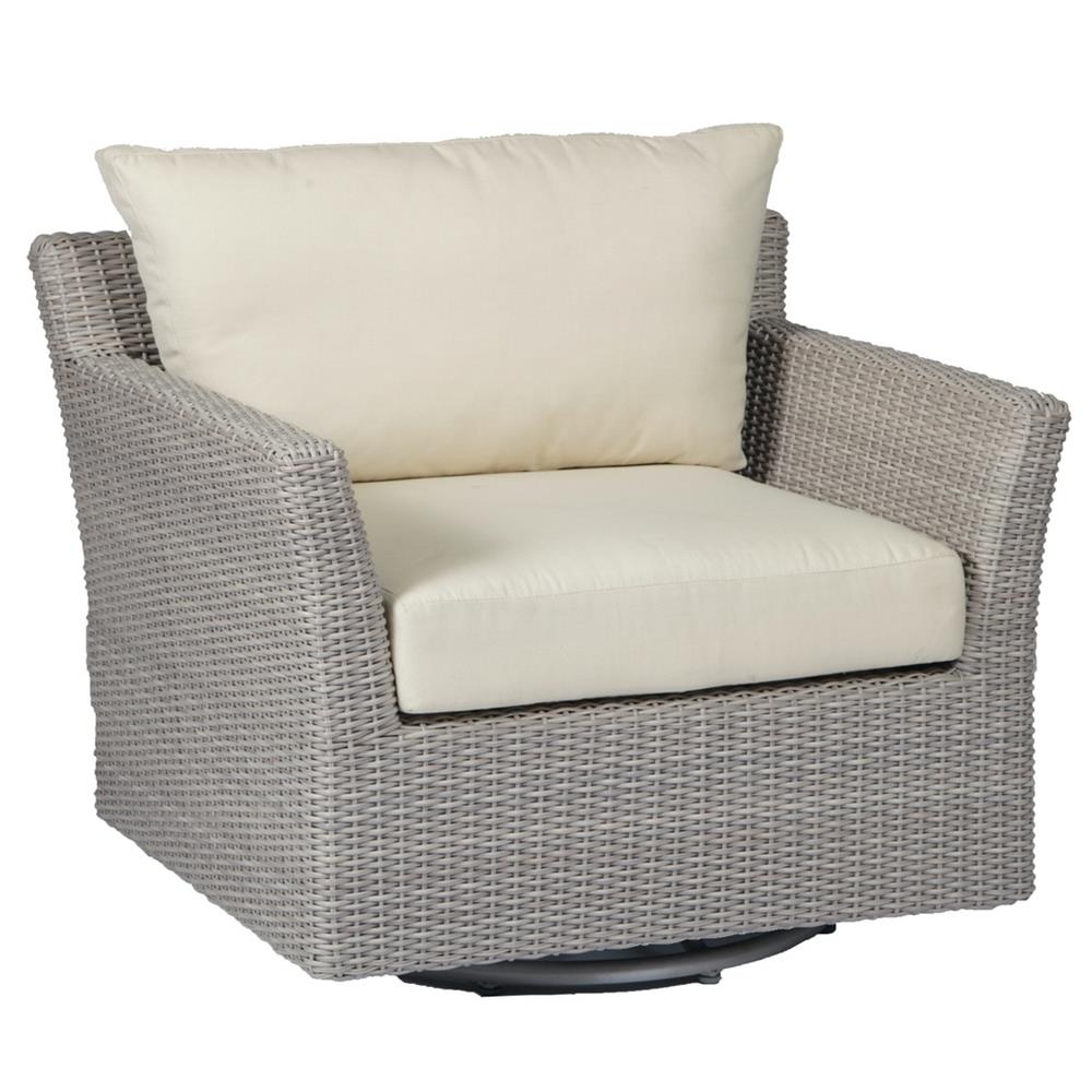 Club Woven Grey Wicker White Upholstered Outdoor Swivel Glider Chair
