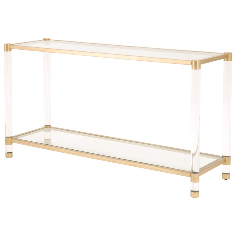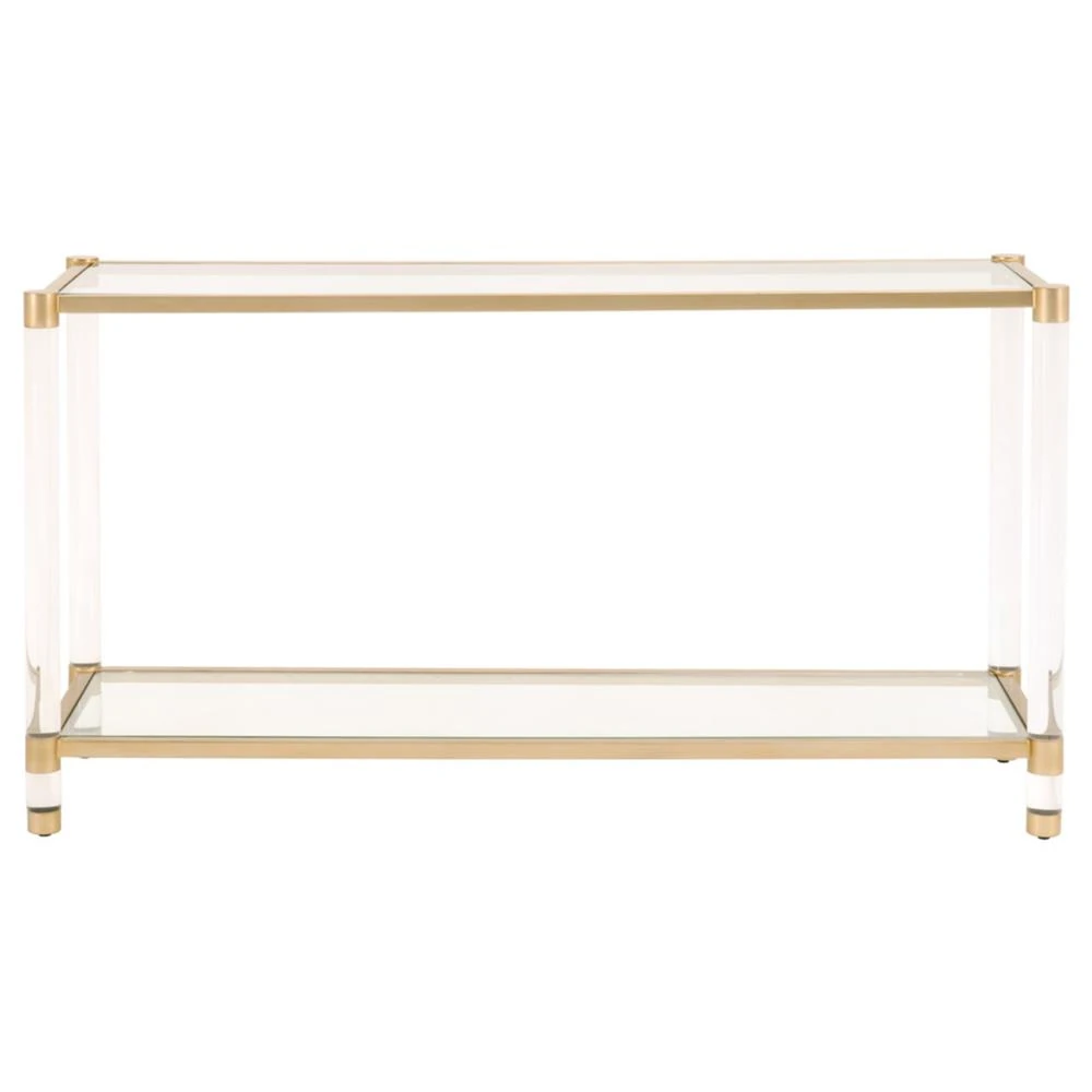 Rowan Modern Classic Glass Top Clear Acrylic Gold Metal Frame Console Table