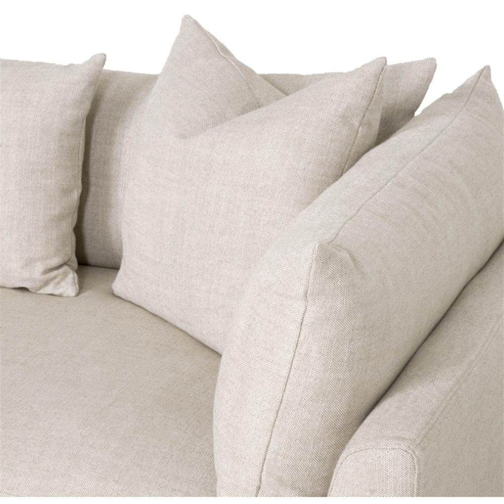• Slipcovered in beige fabric. Fabric content: 55% linen and 45% polyester. Removable slipcover