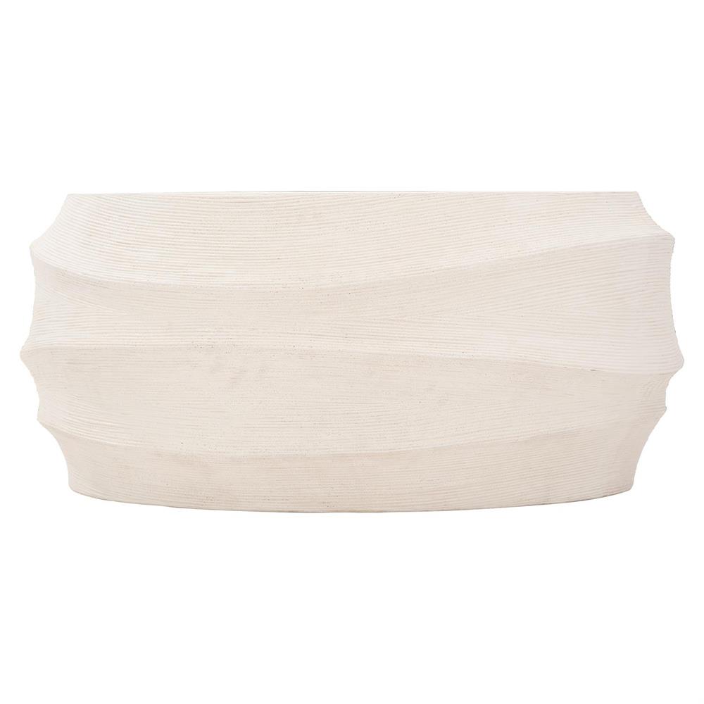 • Yanis Coastal Off-White Resin Drum Outdoor Coffee Table - Small|Kathy Kuo Home