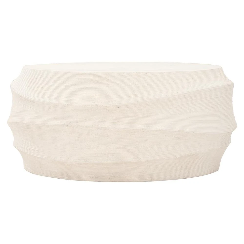 Yanis Coastal Off-White Resin Drum Outdoor Coffee Table - Small