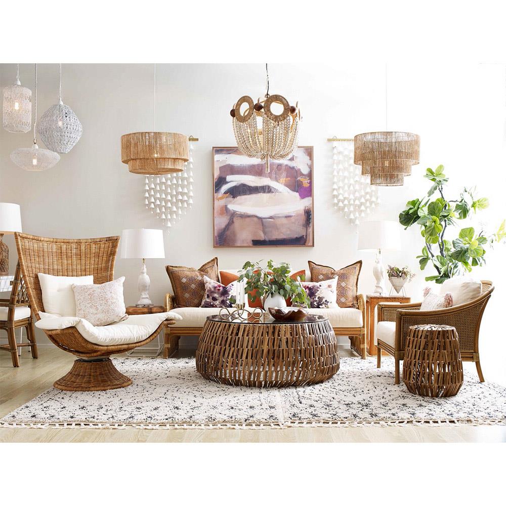 • Camille Coastal Beach Natural Rattan Pendant|Kathy Kuo Home