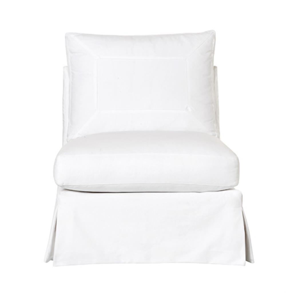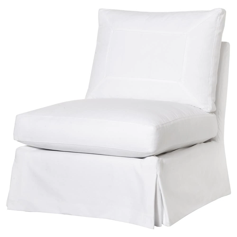 • Cisco Home Genevieve Modern Classic White Linen Slip Cover Low Back Arm Chair|Kathy Kuo Home