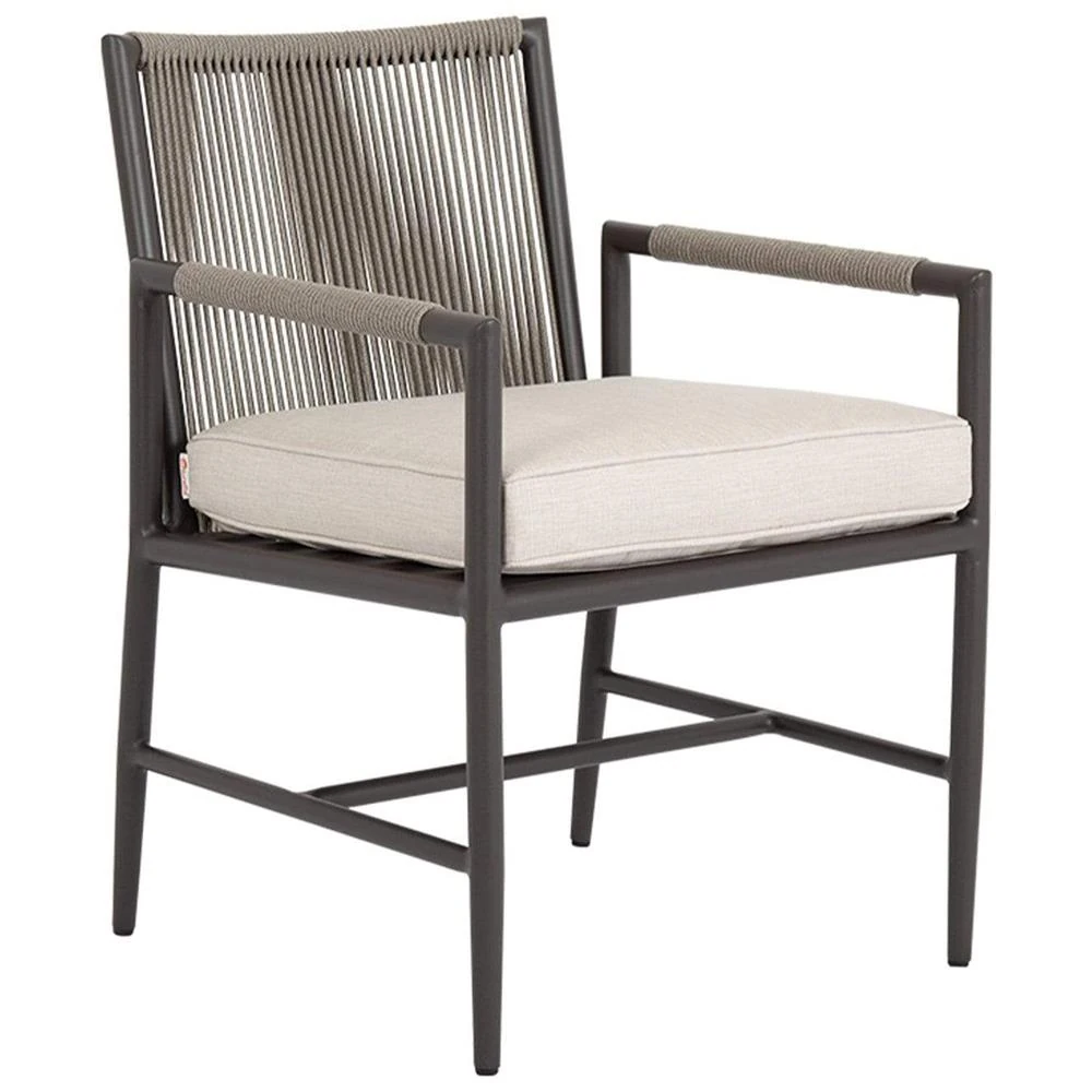• Jace Industrial Grey Performance Sling Outdoor Dining Arm Chair|Kathy Kuo Home