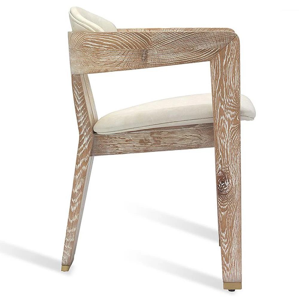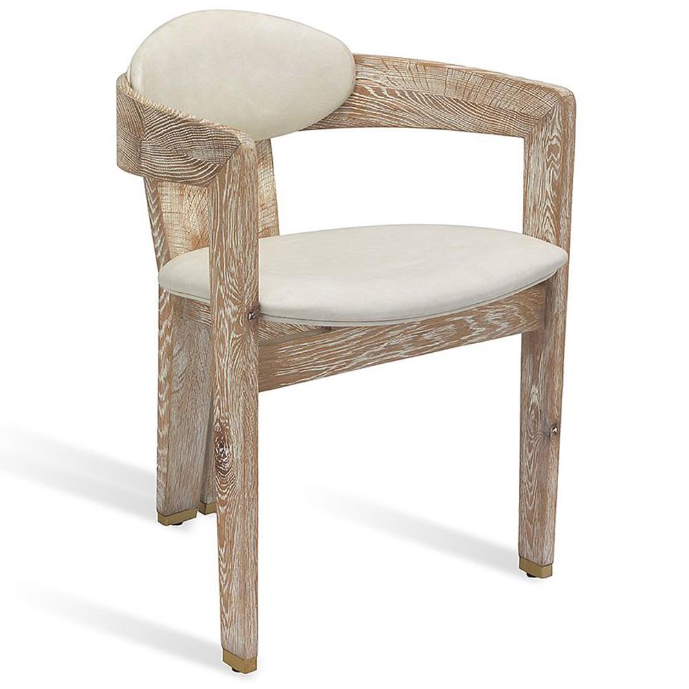 • Andy Modern Classic Ivory Performance Seat Brown Wood Dining Chair|Kathy Kuo Home