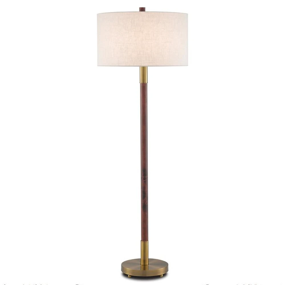 Rolly Modern Classic Brown Wood Antique Brass Metal Floor Lamp