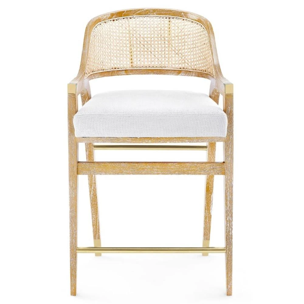 Edward Coastal White Linen Natural Mahogany Woven Cane Counter Stool