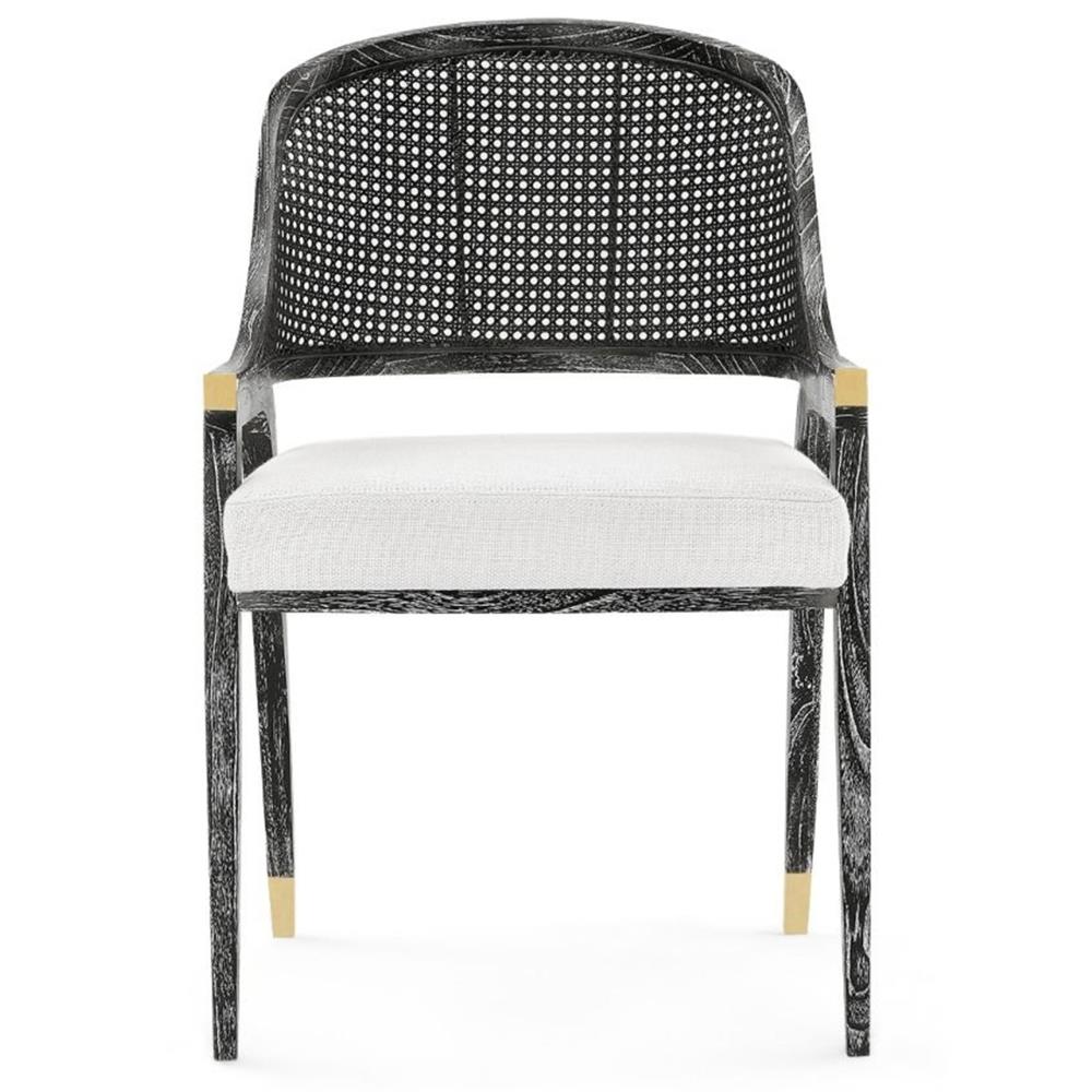 • Annette Modern Classic Dark Brown Cane Wood Frame White Performance Dining Side Chair|Kathy Kuo Home