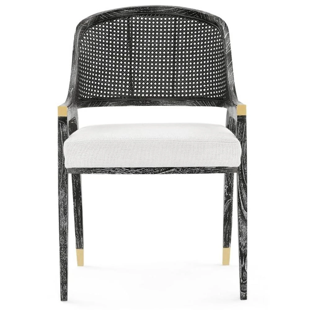 • Lyndon Coastal Black Mahogany White Upholstered Seat Cane Dining Chair|Kathy Kuo Home