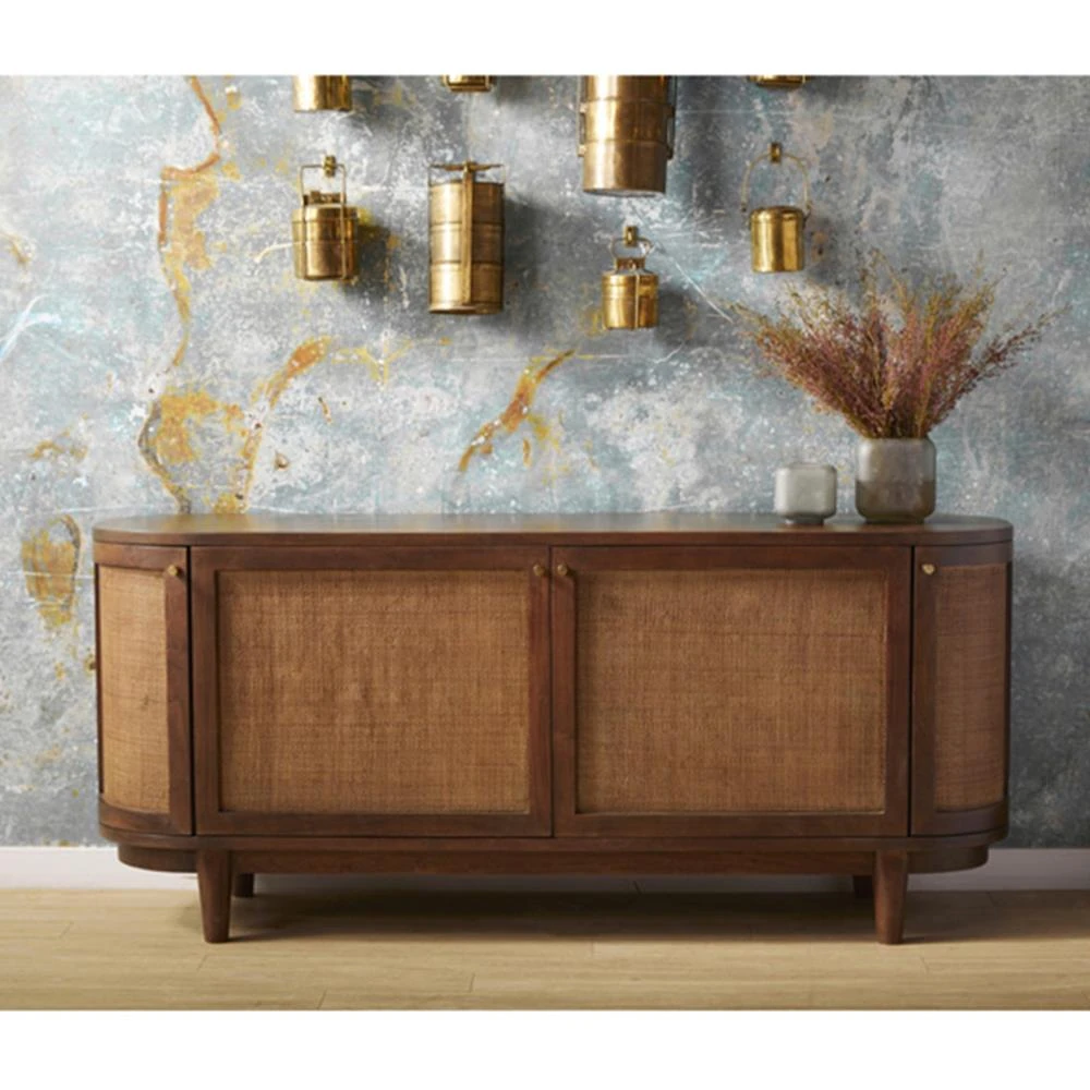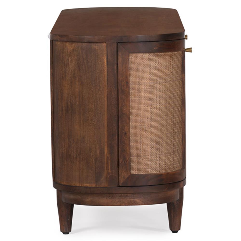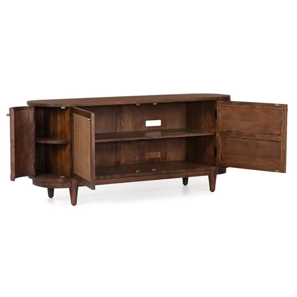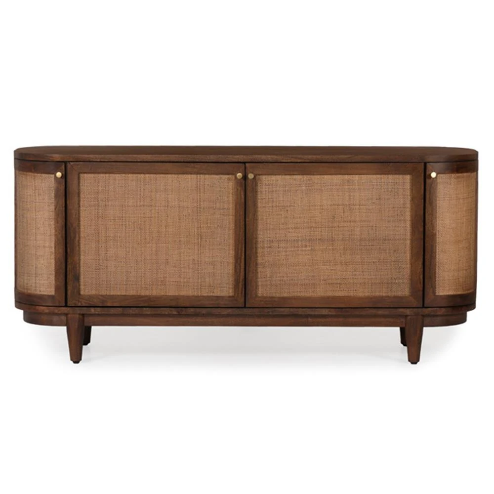 Daphne Mid Century Dark Acacia Wood Woven Cane Rattan 4 Door Media Cabinet - 68"W