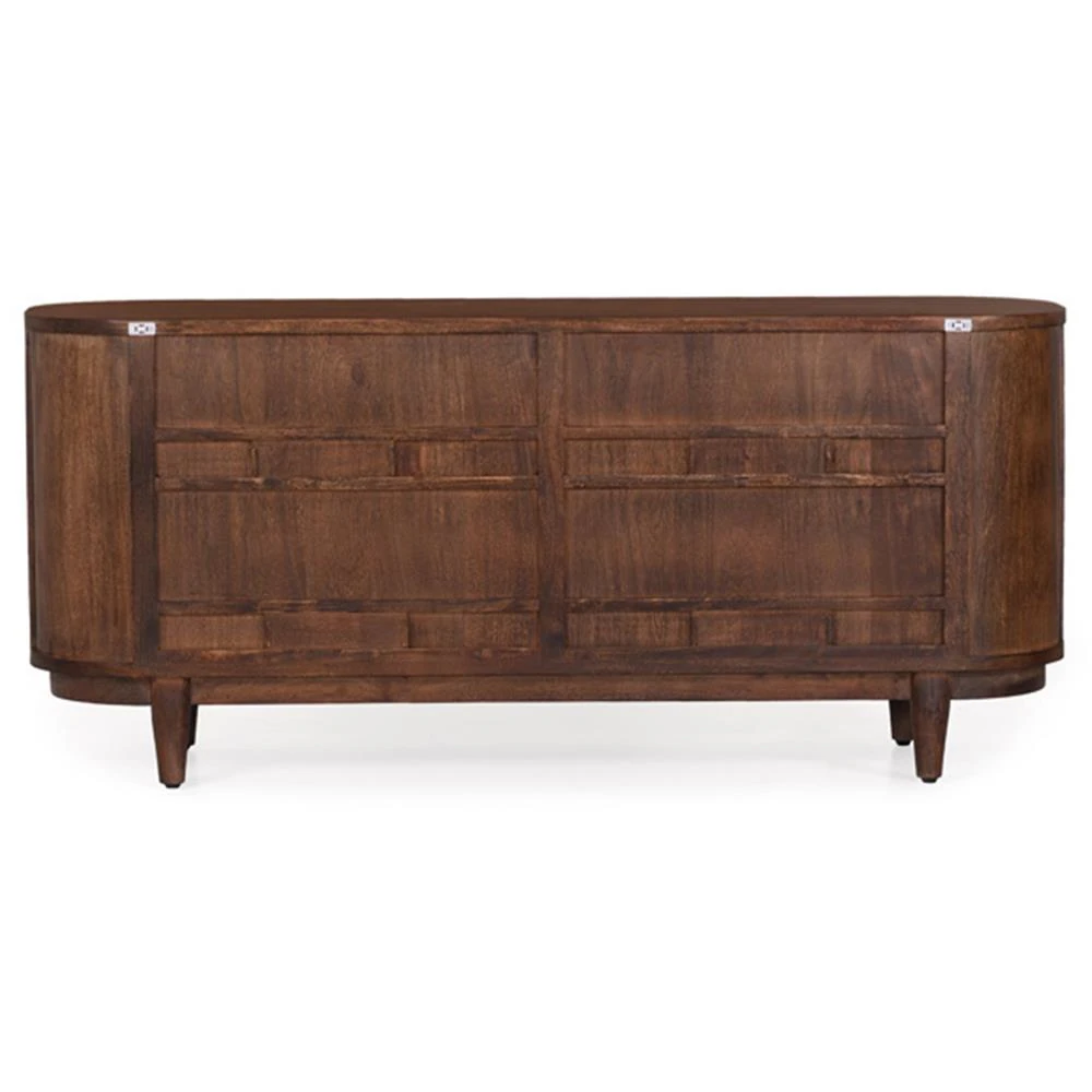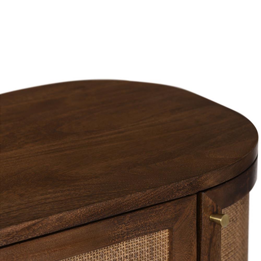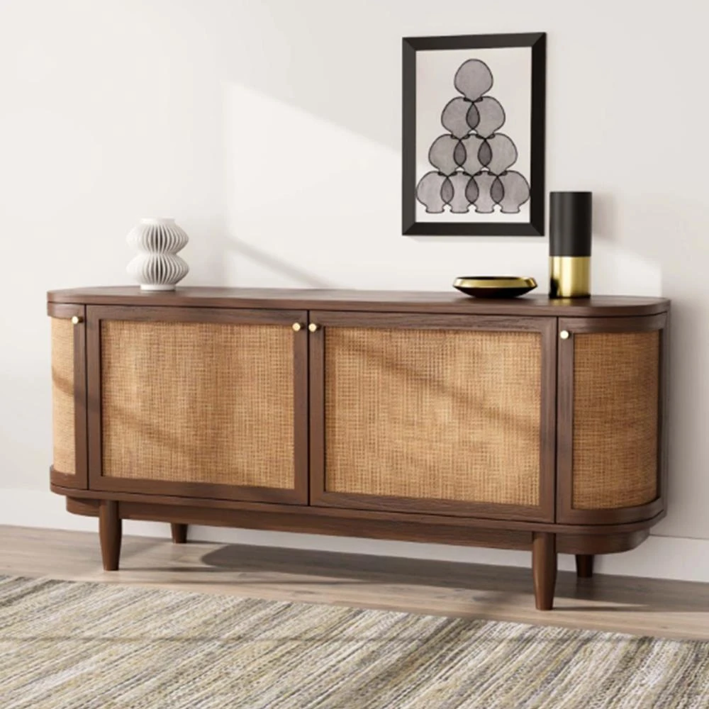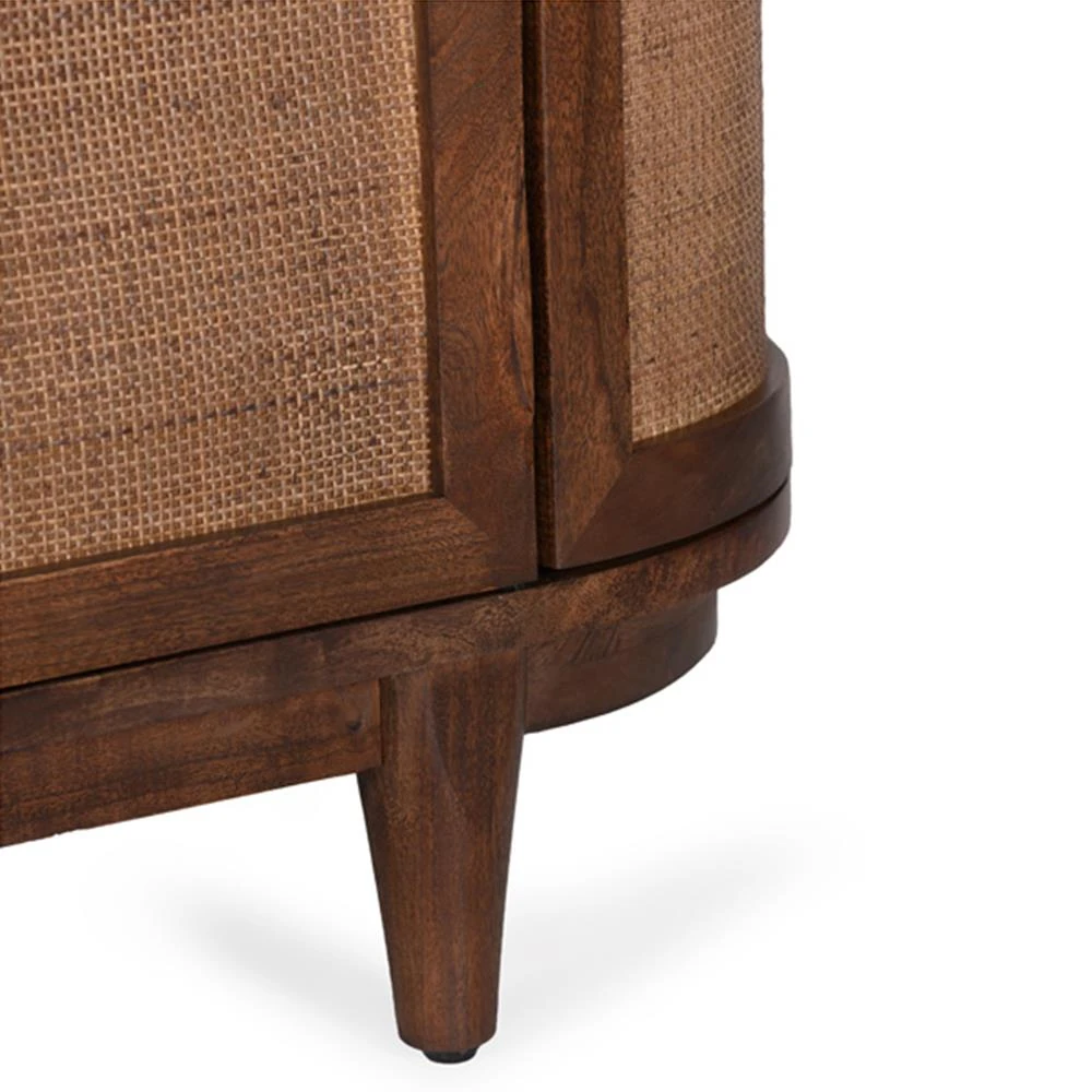 Daphne Mid Century Dark Acacia Wood Woven Cane Rattan 4 Door Media Cabinet - 68"W