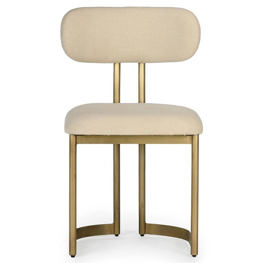 Ezra Mid Century Off White Upholstered Dark Brown Wood Brass Metal Side Chair