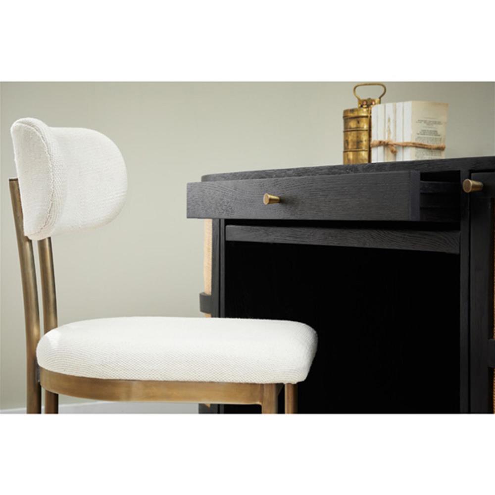 • Ezra Mid Century Off White Upholstered Dark Brown Wood Brass Metal Side Chair|Kathy Kuo Home