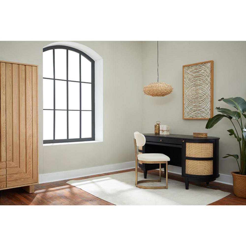 • Camilla Coastal Beach Off White Upholstered Seat Woven Rattan Dining Arm Chair|Kathy Kuo Home