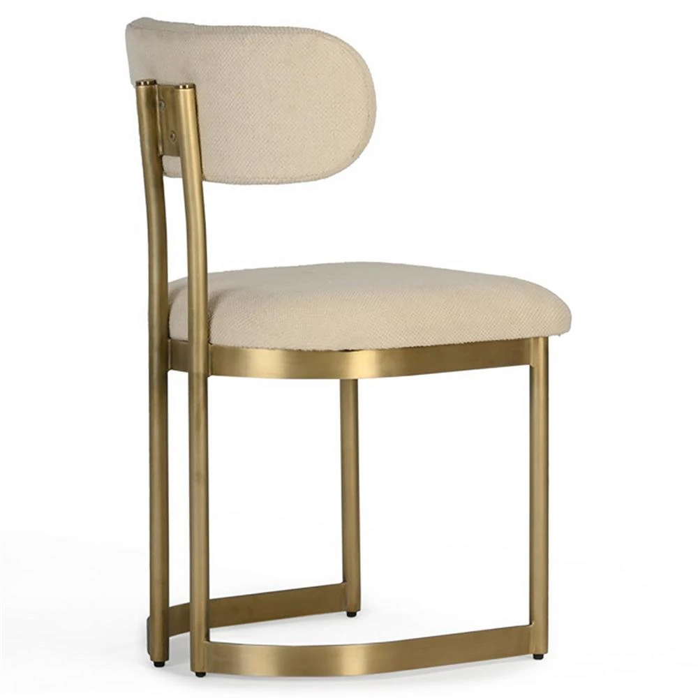 Freya Hollywood Regency Cream Upholstered Antique Brass Dining Side Chair