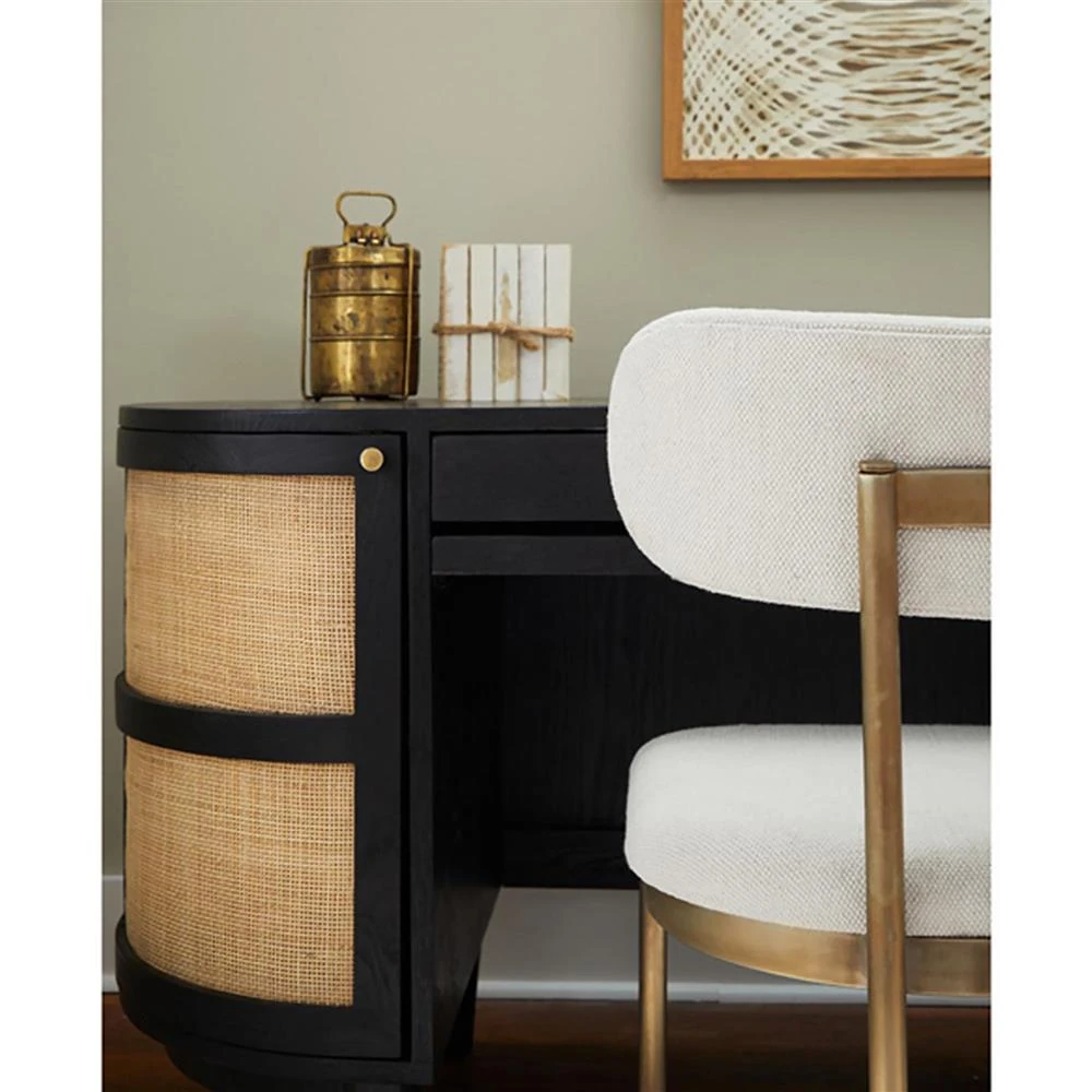 • Tina Modern White Performance Upholstered Seat Black Cane Dining Chair|Kathy Kuo Home