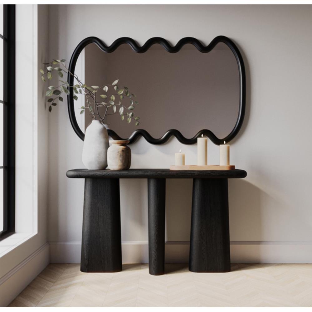 Our Laura Rustic Lodge Black Oak Wood Round Edge Console Table is crafted from oak that is sculpted to create an organic shape which co ... more