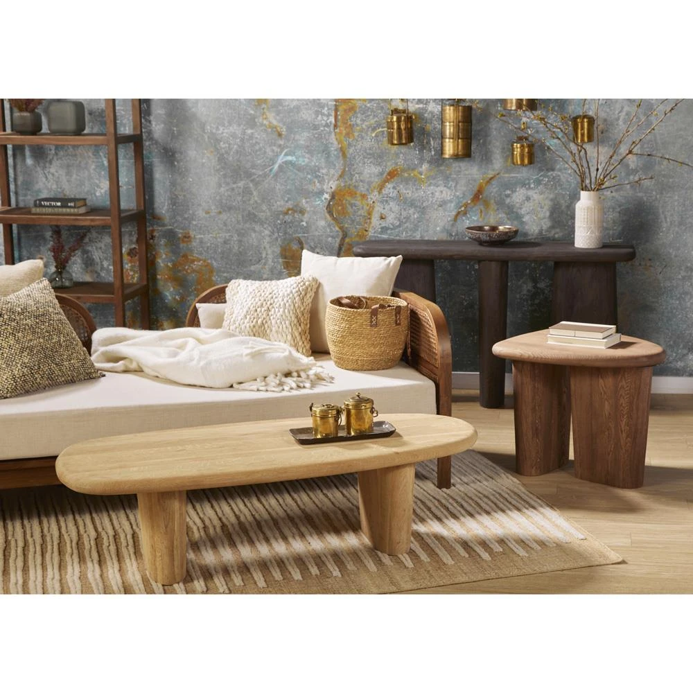 Laura Modern Classic Natural Oak Wood Round Edge Oval Coffee Table