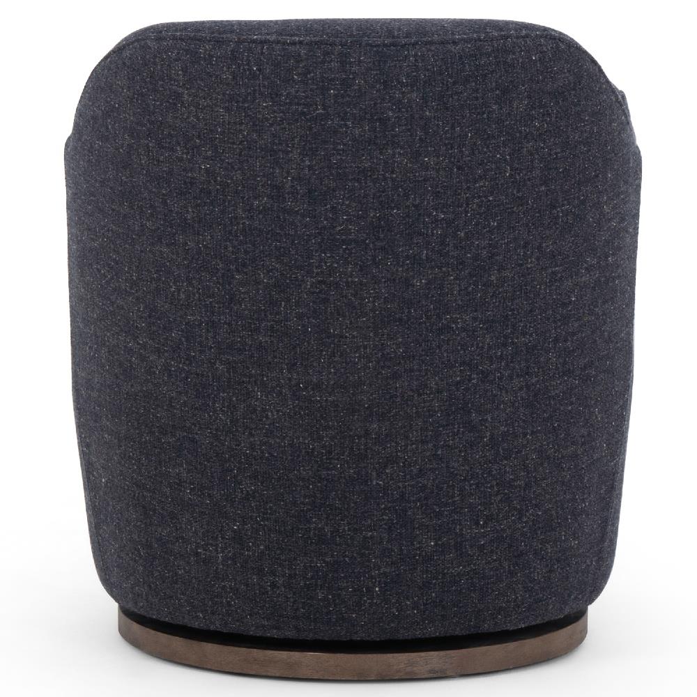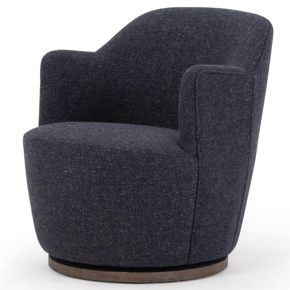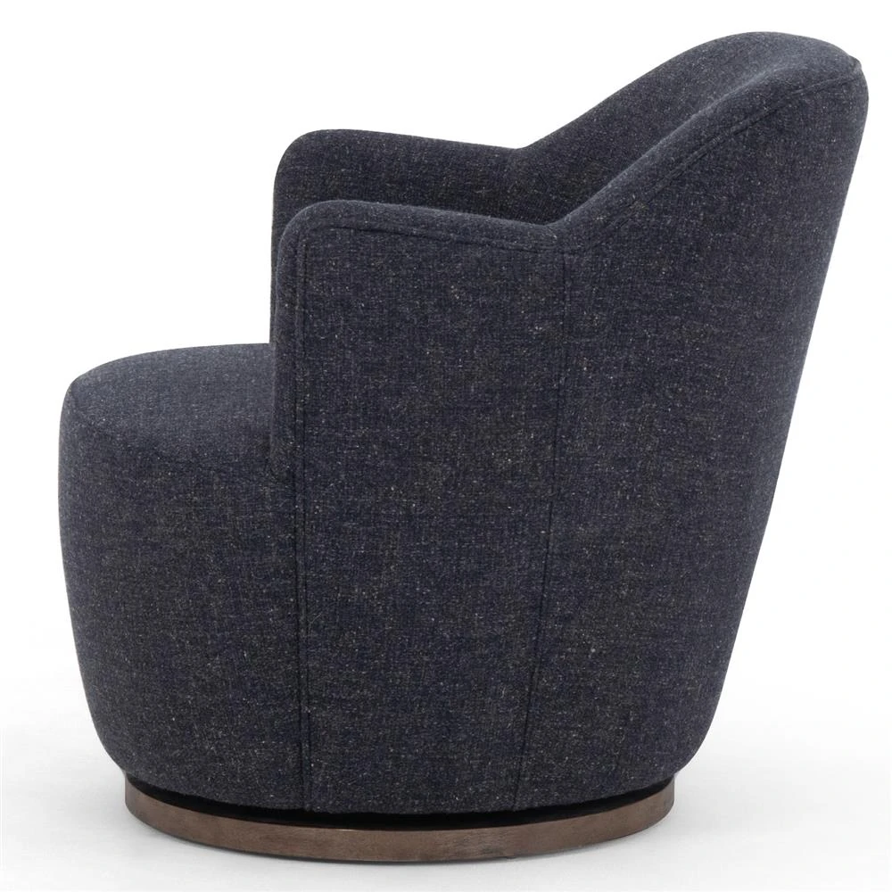 • Features a drum-style seating is upholstered in a soothing and textural slate-grey