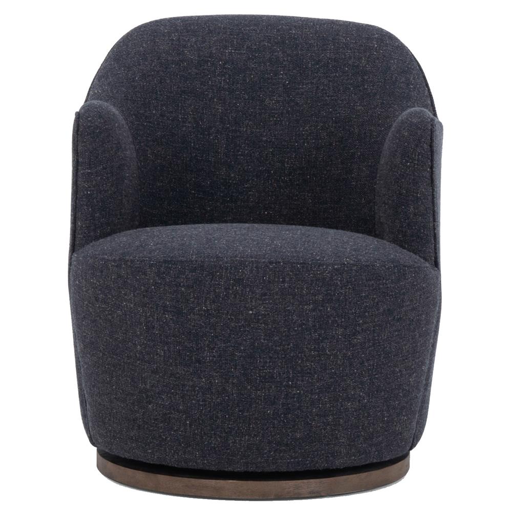 Samuel French Country Dark Grey Performance Brown Wood Swivel Arm Chair