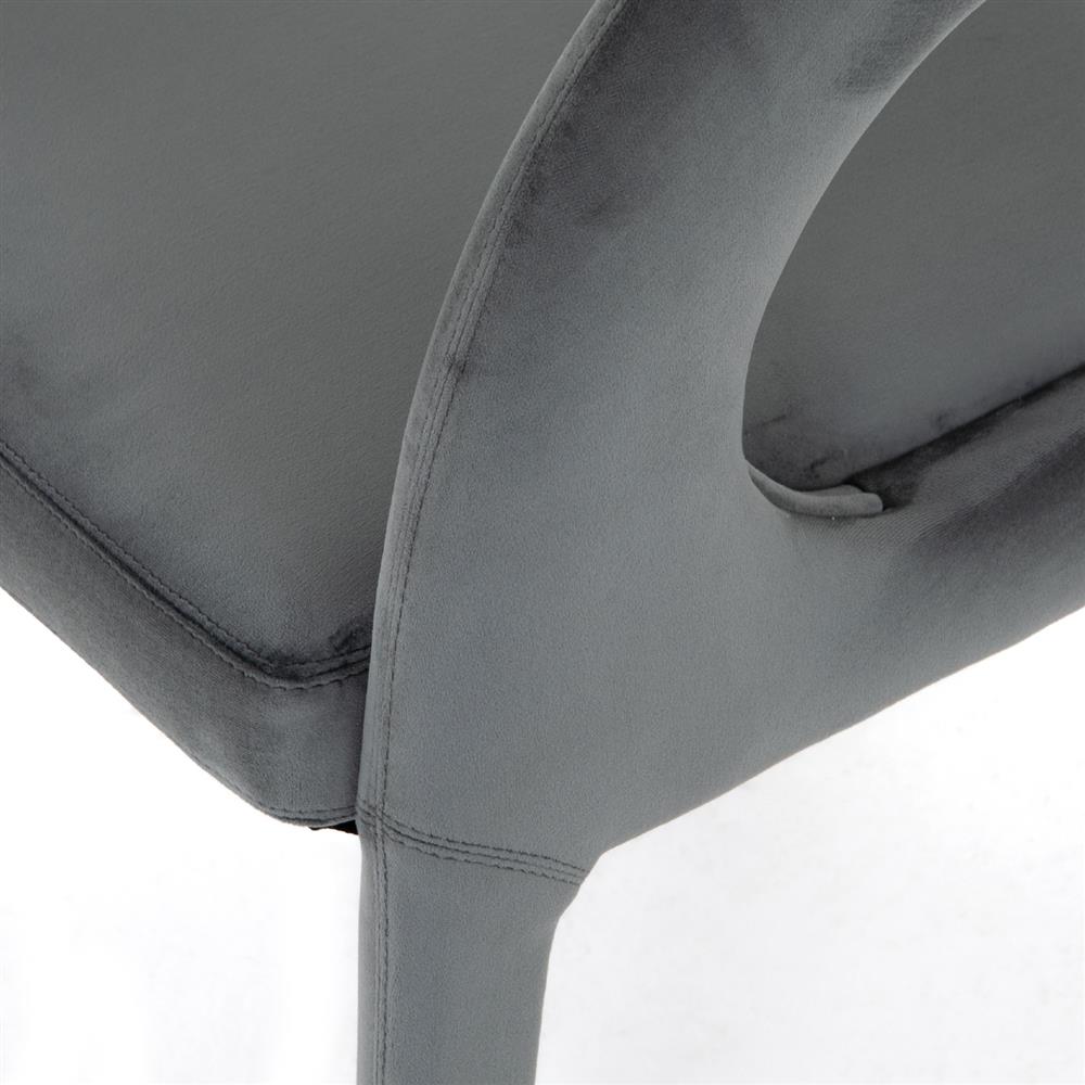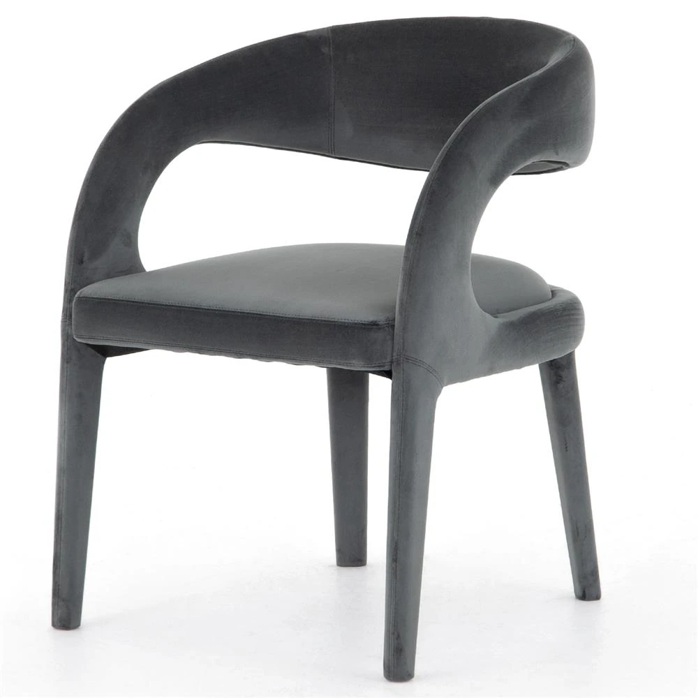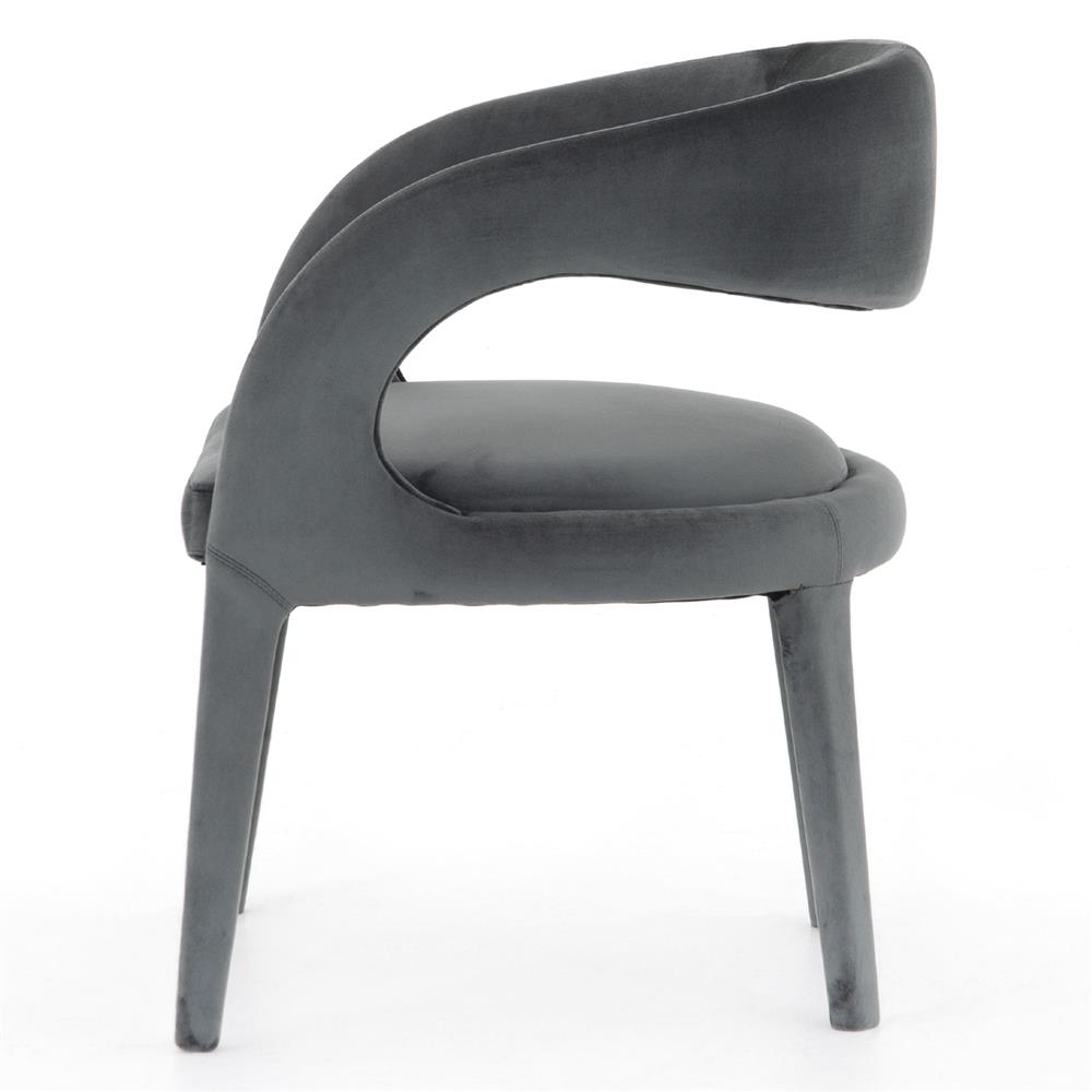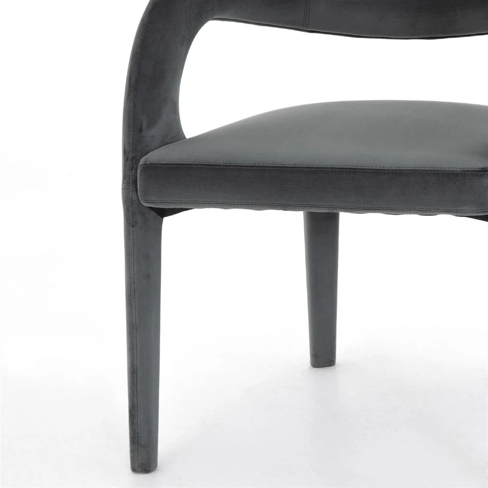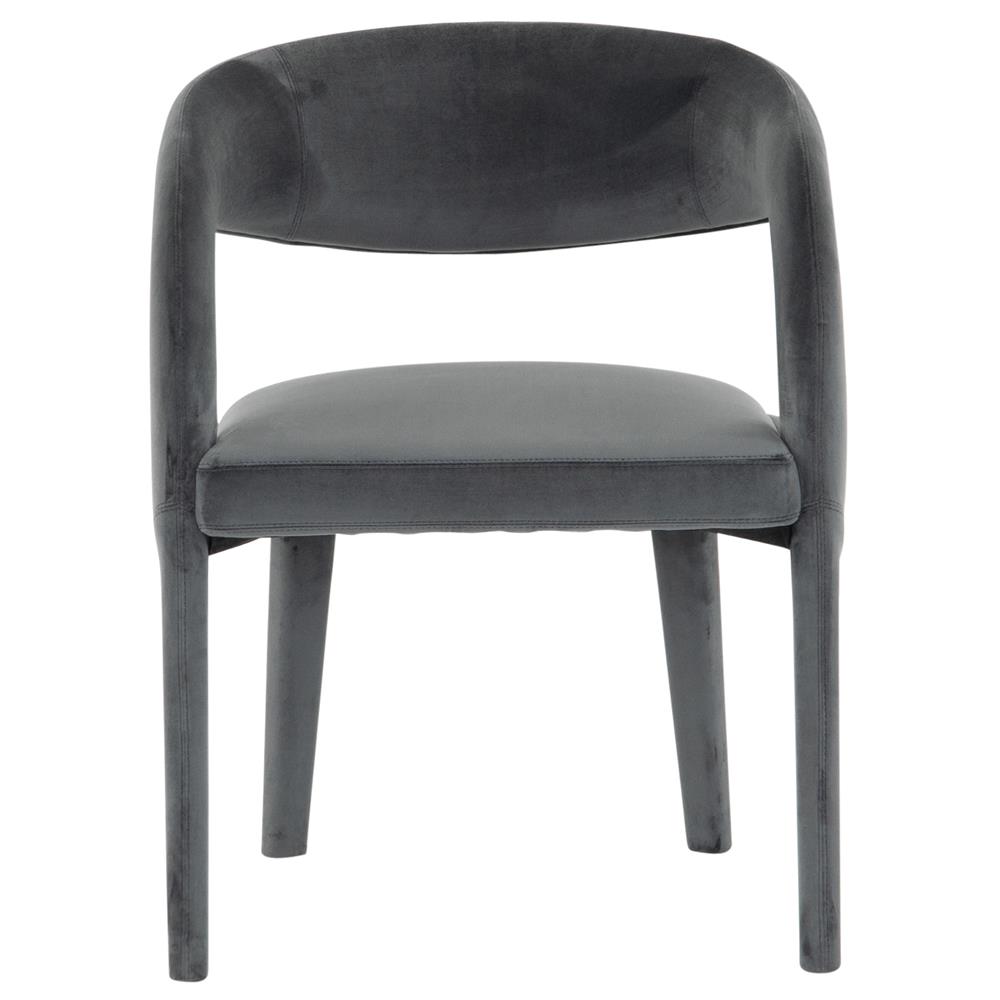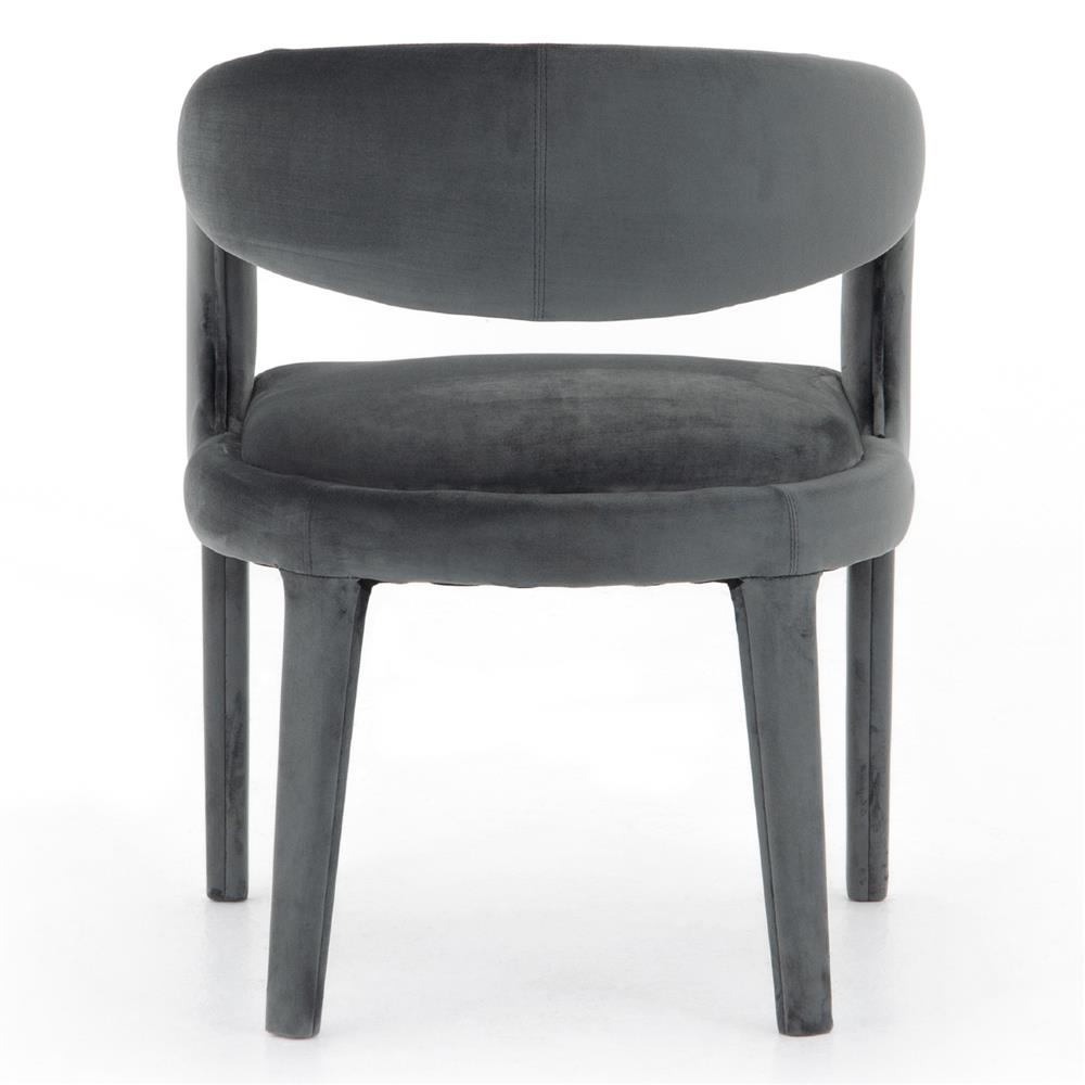 A sculptural wrap silhouette gives the Alexander dining armchair a decidedly fresh look. Velvety charcoal grey upholstery envelops the ... more