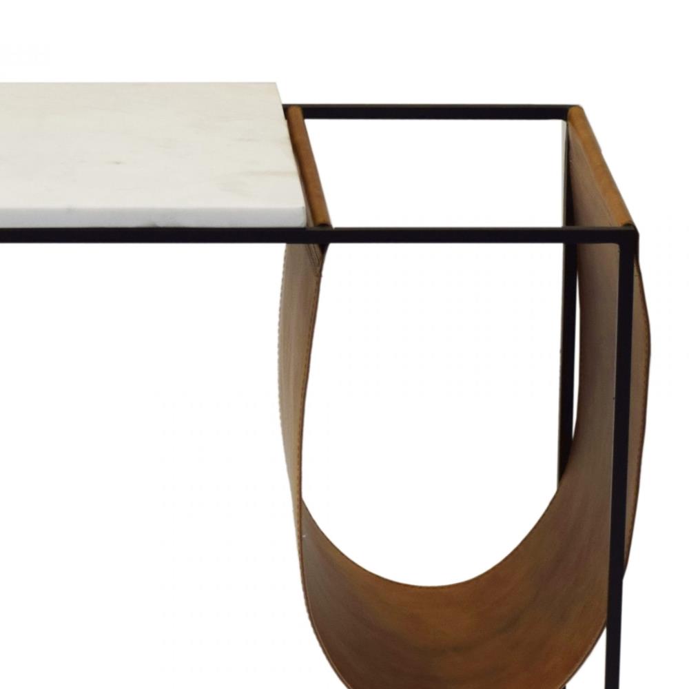 Ceve Rustic Lodge White Marble Top Sling Iron Magazine Holder