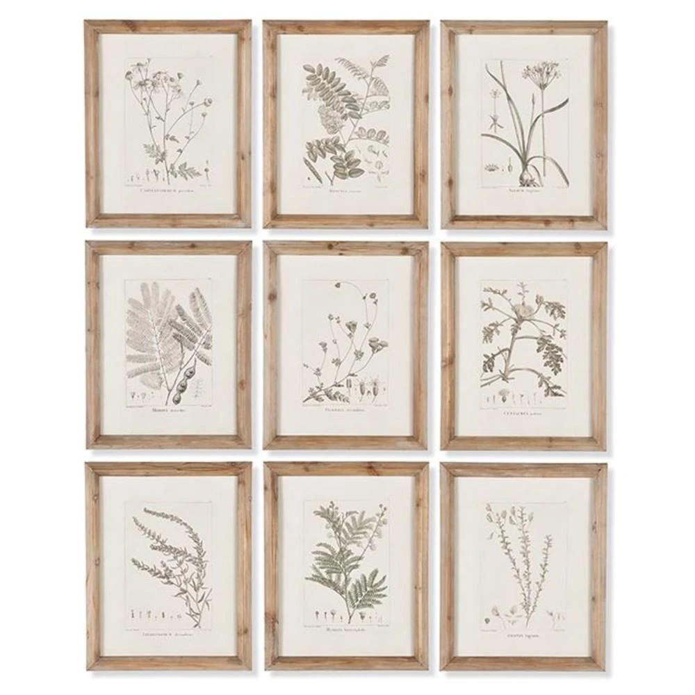 Anthea Traditional Green Botanical Black Frame Multipanel Illustration - 14x14
