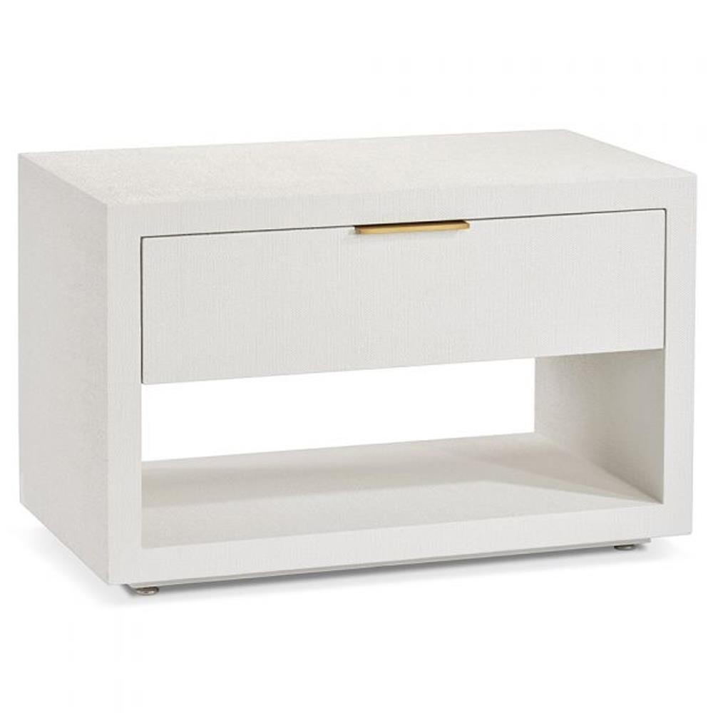 • Livia Modern Classic Natural White Wood Linen Textured Nightstand - Small|Kathy Kuo Home